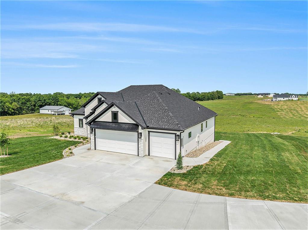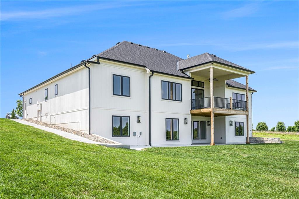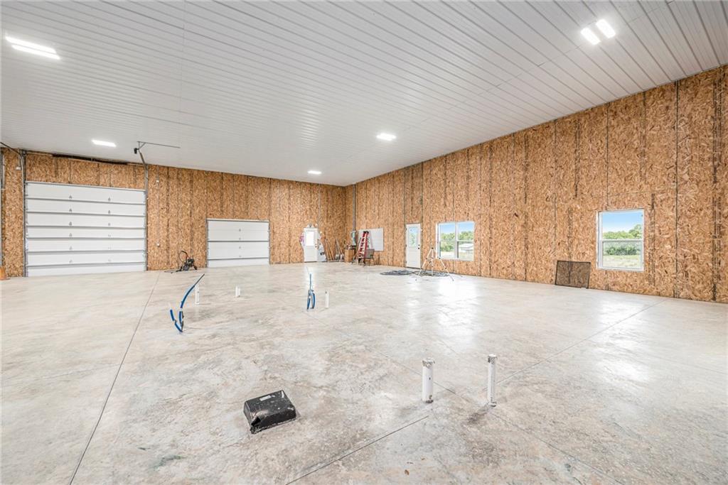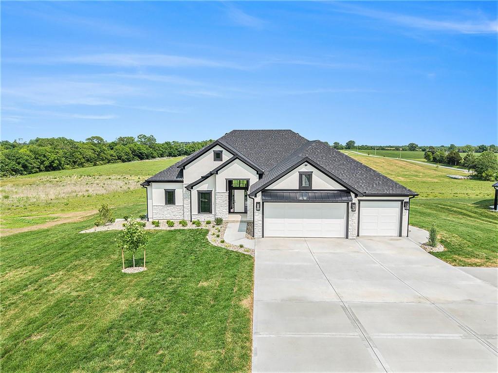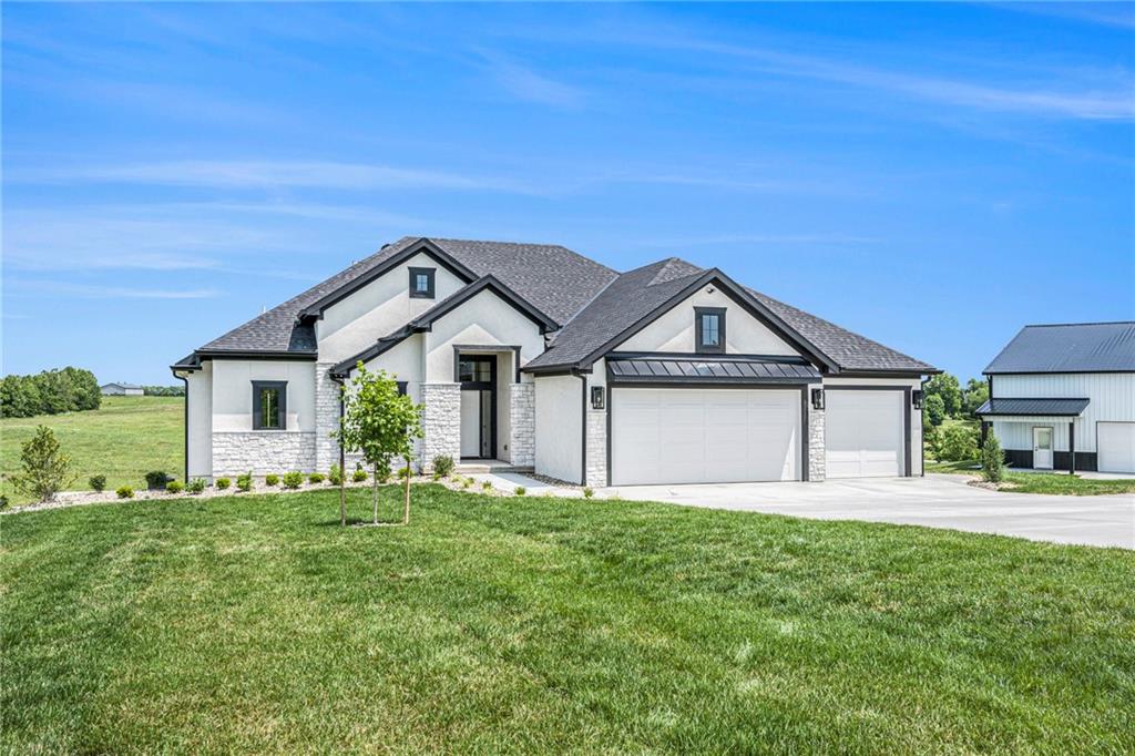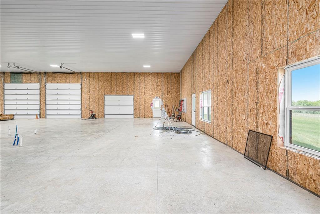 Want to be out of the city, yet not to far from amenities and freeway access? Need an outbuilding for your business or just a car enthusiast? Looking for possible multi generational housing? Brand new construction home with main level living and soft contemporary finishes awaits you on 6.8 acres of Platte County land. The main level boasts a light, bright kitchen with an expansive island of quartz countertops and matte black appliances. The primary suite and private secondary bedroom/full bath and an office or den complete the main floor with all solid surface flooring throughout. The lower level includes 2 bedrooms and 2 full baths plus a spacious rec room and a walk up bar area. Plenty of storage or possible future finish for gym or office in the lower level. A 4600 sq ft outbuilding with 4 garage door openings provides additional space for RV or multiple car garages. The building is also plumbed for a 1 bed, 1.5 bath apartment or perfect for a business office. Electrical is wired for future pool, hot tub or generator additions. Home is nearly finished and professional photos will follow after completion.