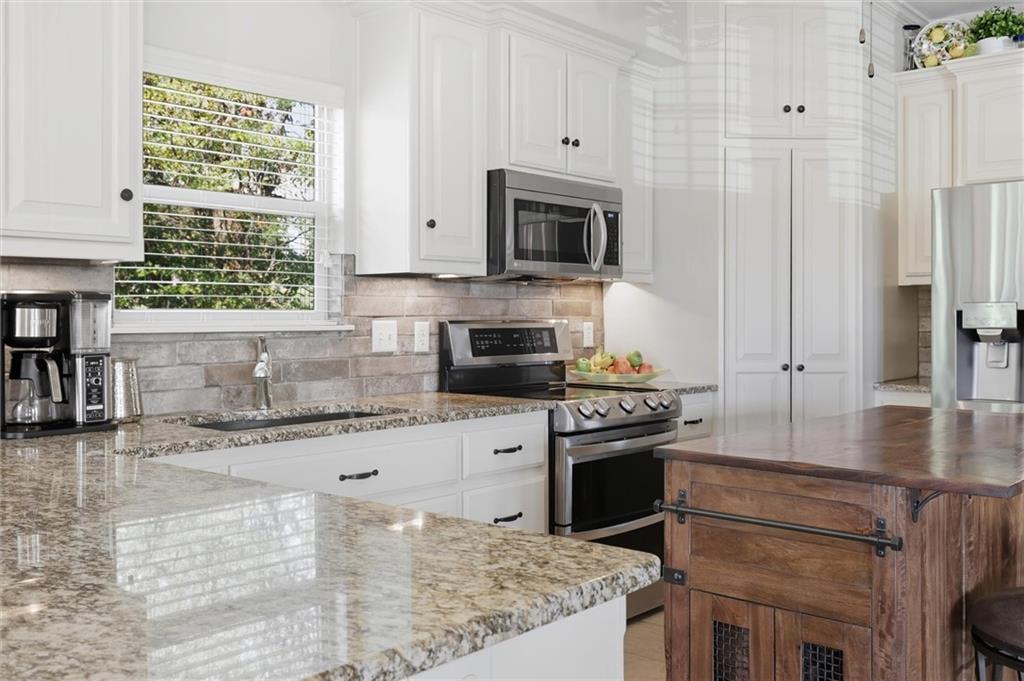All appliances stay, including the washer and dryer. The neighborhood features a private pond with a shelter and play area, perfect for outdoor relaxation and recreation.