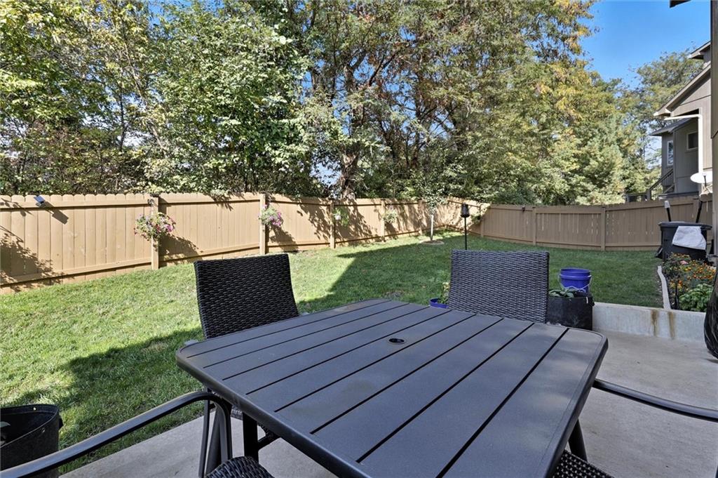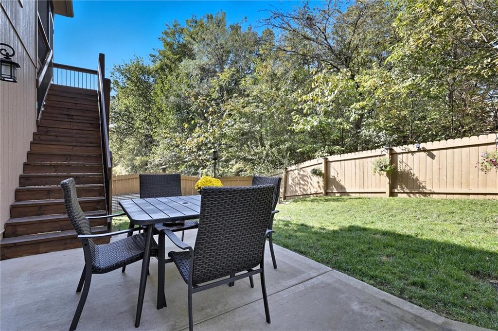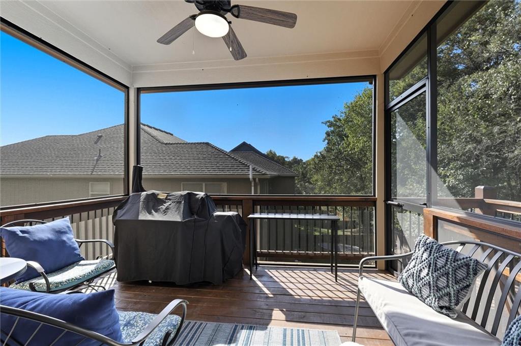 Enjoy outdoor living on the screened, covered deck overlooking the treed lot and privacy-fenced backyard. Deck stairs lead to the lower level patio, offering multiple outdoor entertaining spaces. Beautiful landscaping enhances curb appeal, while the epoxied garage floor provides a clean, finished look.