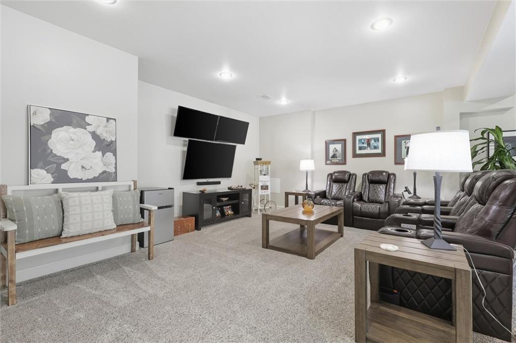 The walk out lower level offers flexible living options and is perfect for a recreation room, home theater, or guest suite. This space features soaring ceilings and a full bath.