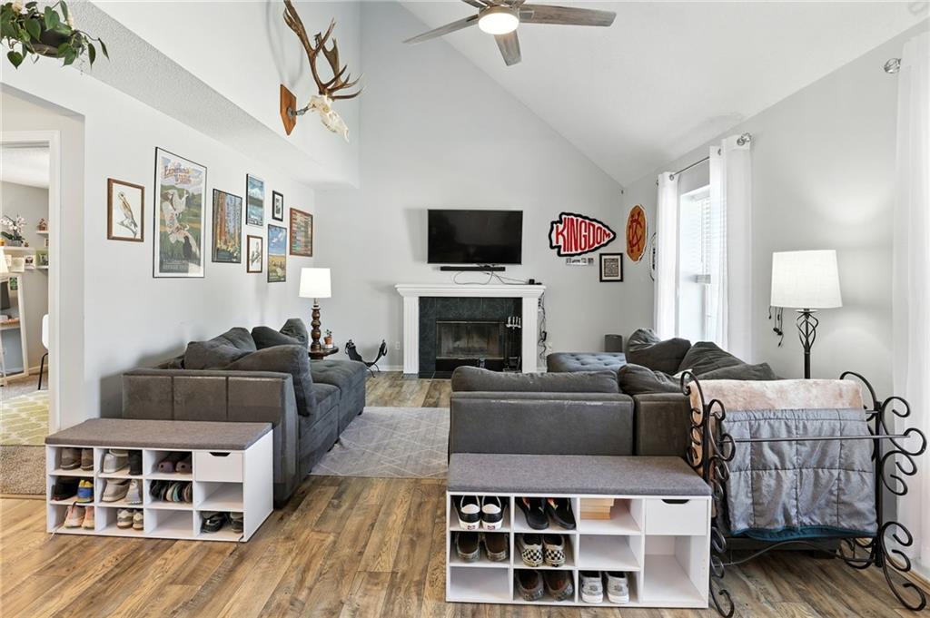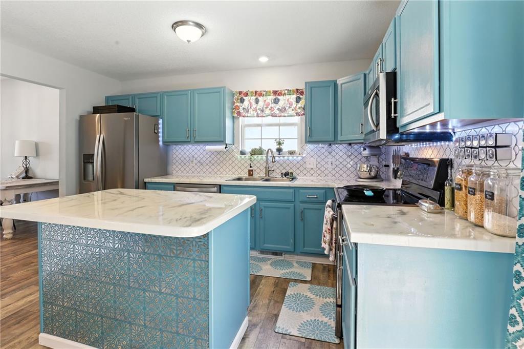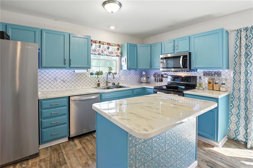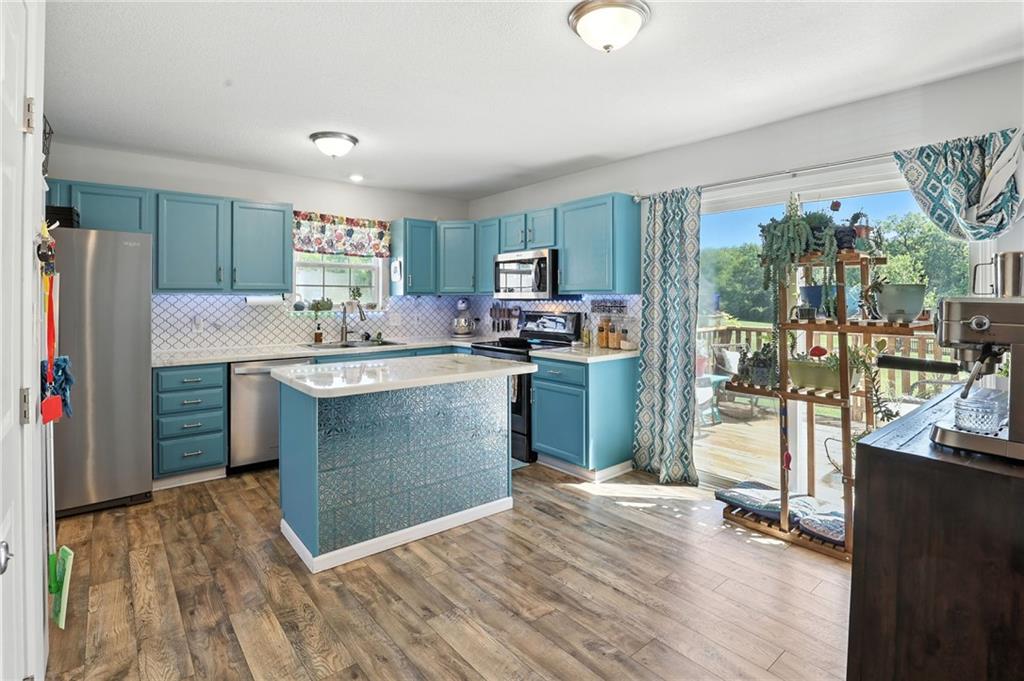 Welcome to 13775 Hunter Drive — the Platte City surprise you didn’t see coming! From the street, this charming 1.5 story home might look cozy… but step inside and you’ll quickly discover, there’s way more house than meets the eye! With over 1,800 square feet of finished space, this home delivers room to roam, relax, and really live. On the main level, the vaulted ceilings and open living area create a “wow” factor you didn’t expect. The updated kitchen with its colorful cabinets, fresh countertops, backsplash, newer appliances, and center island is ready for everything from pancake flipping to late-night DoorDash deliveries (we won’t judge). Main level living with one bedroom on the first floor and 2 more upstairs for extra privacy.