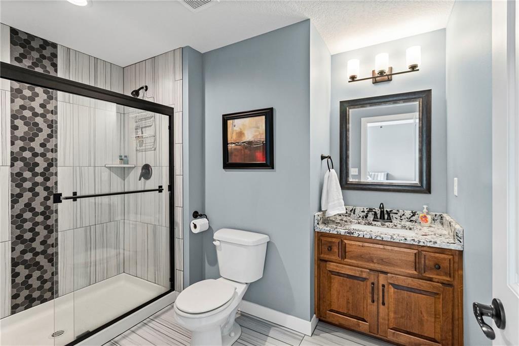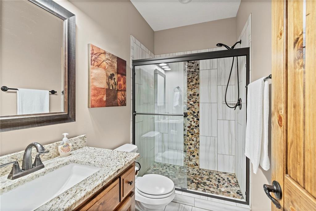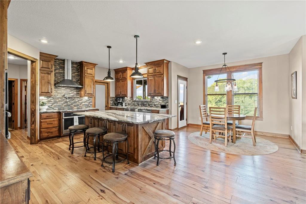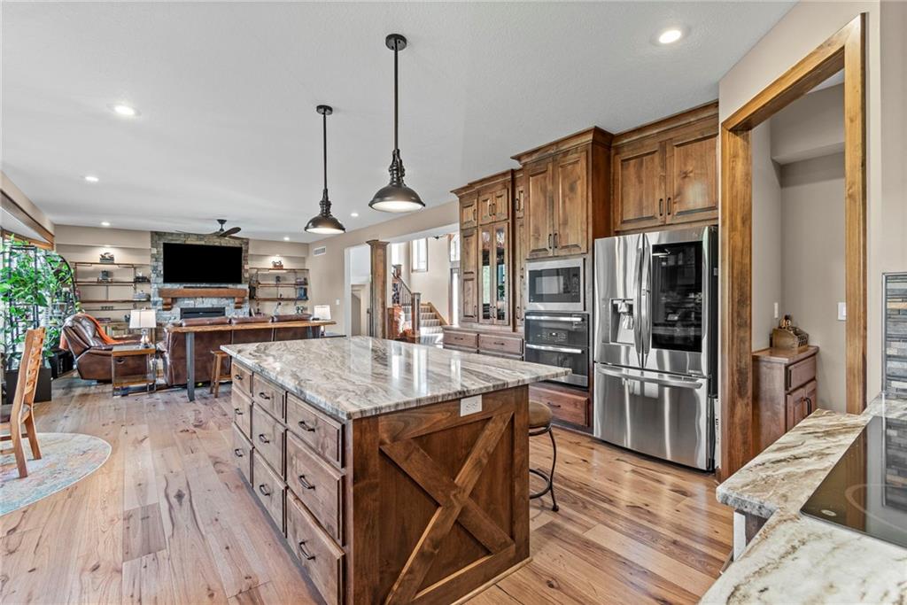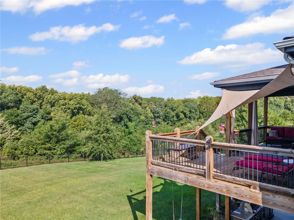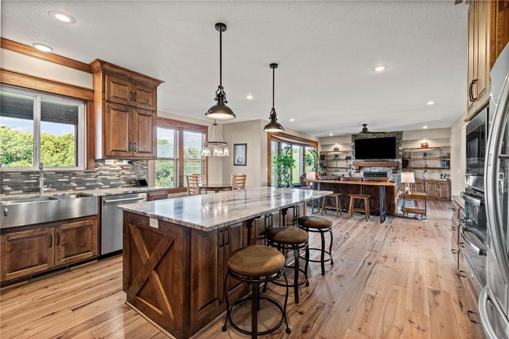 Beautiful two story home in Seven Bridges! Dreamy lot nestled in a quiet cul-de-sac with woodland and rolling hills backdrop. Through the front doors you will find plenty of room to welcome guests. Dining room ideal for hosting holiday meals. Inviting living room with plenty of windows, lovely fireplace, and surround with custom copper detailing. Roomy kitchen featuring marble countertops, apron sink, SS appliances, double ovens, convection cooktop, island with seating, pantry, custom cabinetry with built-in hutch & breakfast room. Just beyond the kitchen you will find the owner’s entry with boot bench, key drop, & coat closet. Main level bedroom & bathroom tucked away for privacy, ideal for guests or home office. Venture upstairs to find three generous sized bedrooms, two bathrooms, & laundry room on your way to your Owner’s Suite. At the end of the hall, your Owner’s Suite will become your private oasis with fireplace, oversized walk-in closet, jetted/heated tub, separate shower, double sinks, & vanity with hutch. Head to the lower level to the basement of your dreams! This finished walk-out basement features wet bar, fireplace, spacious rec room, a bedroom, full bathroom, and an additional bonus room perfect for hobbies. Expansive basement storage space with suspended garage/stoop, and double doors to the back patio. Plus, the extra deep garage provides even more storage. Fenced in backyard with partially covered deck, oversized patio, and privacy with jaw dropping views! Seven Bridges is an impressive, sprawling neighborhood with tons of trees, fountains, extensive landscaping, athletic field, outdoor basketball court, tennis courts, scenic trails, 3 ponds, play area, two pools with covered shelter spaces and firepit, & a 30,000 sq ft clubhouse with indoor basketball court, party rooms, work spaces, library, & so much more. Easy highway access. This home checks all the boxes!