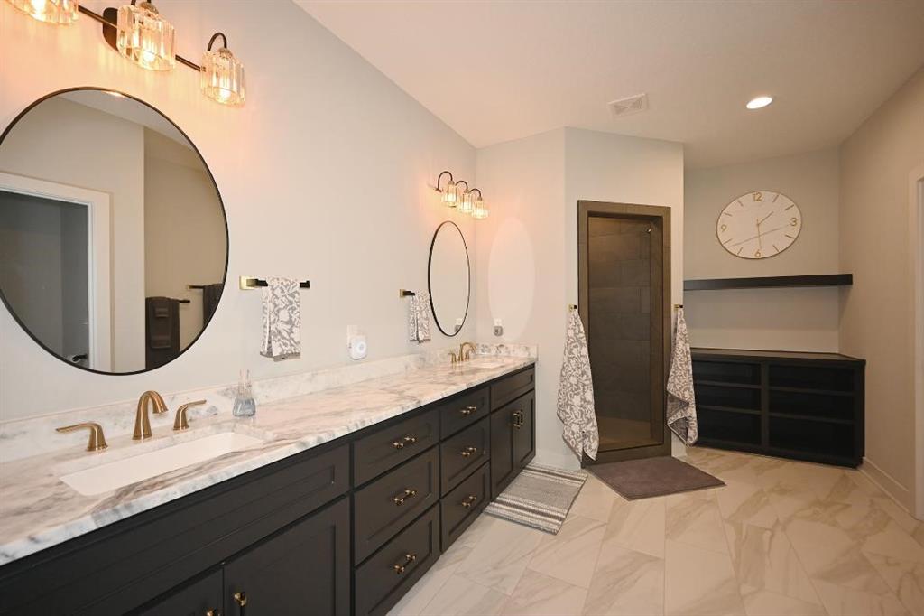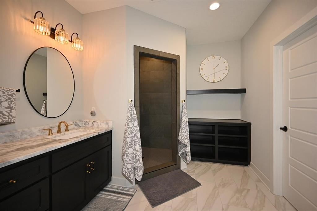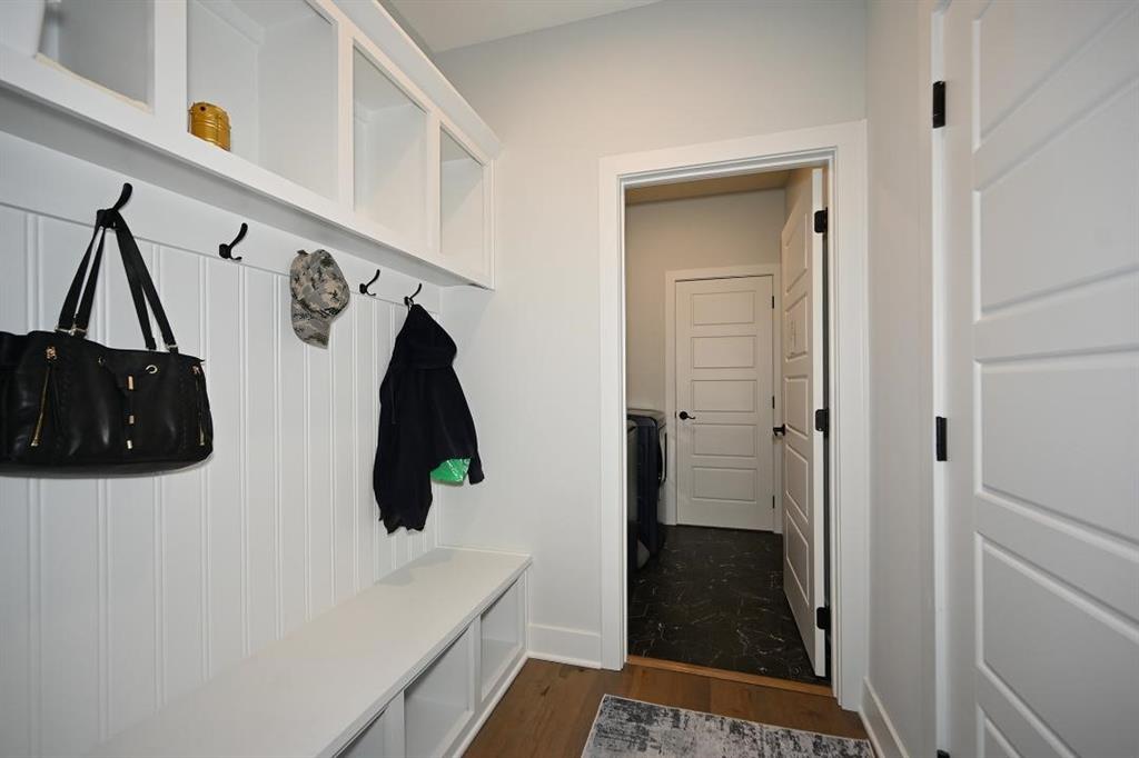 The master suite is a true retreat, highlighted by charming barn doors & a spacious master bath w a tiled shower, built-in shelving, marble double vanities, and a huge walk-in closet that conveniently connects to the laundry room. A practical mudroom leads to the oversized three car garage.