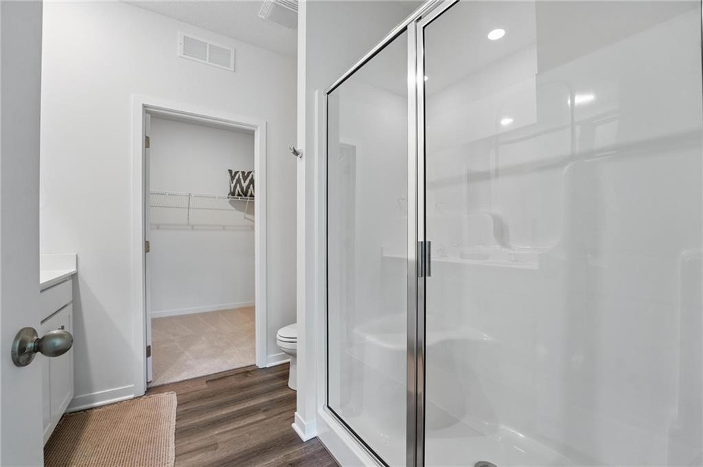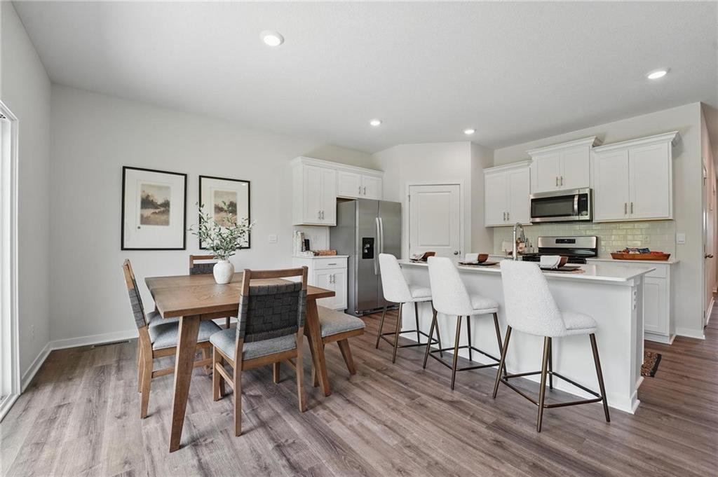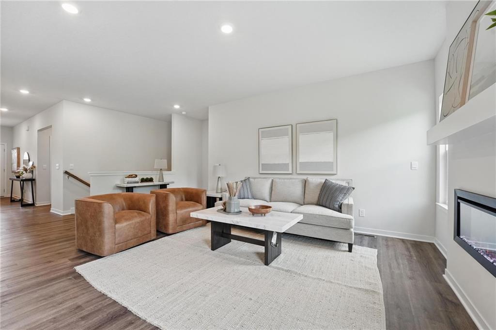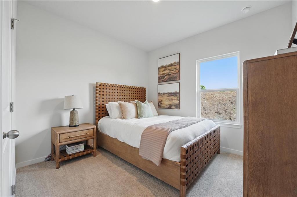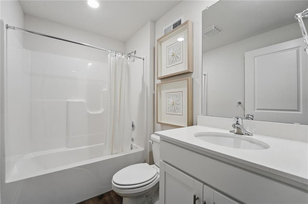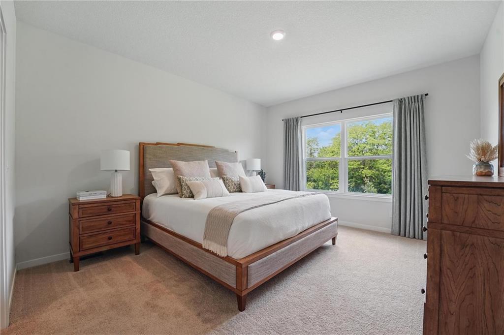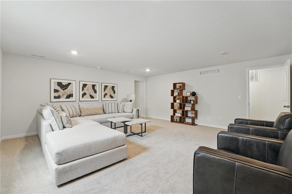 Inside, you’ll find soaring ceilings, an open-concept layout, and abundant windows that flood the home with natural light. The gourmet kitchen showcases quartz countertops, painted maple cabinetry, and Whirlpool® stainless steel appliances, seamlessly connecting to the dining and living areas. A main-floor primary suite offers relaxation with dual vanity, a walk-in shower with glass enclosure, and an oversized closet. Downstairs, the finished basement expands your living space with an additional bedroom, bath, and rec area. Luxury vinyl plank flooring, smart home features, and energy-efficient systems create everyday ease.