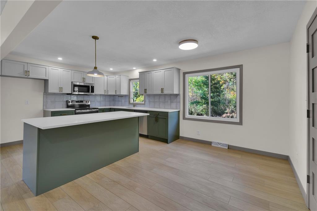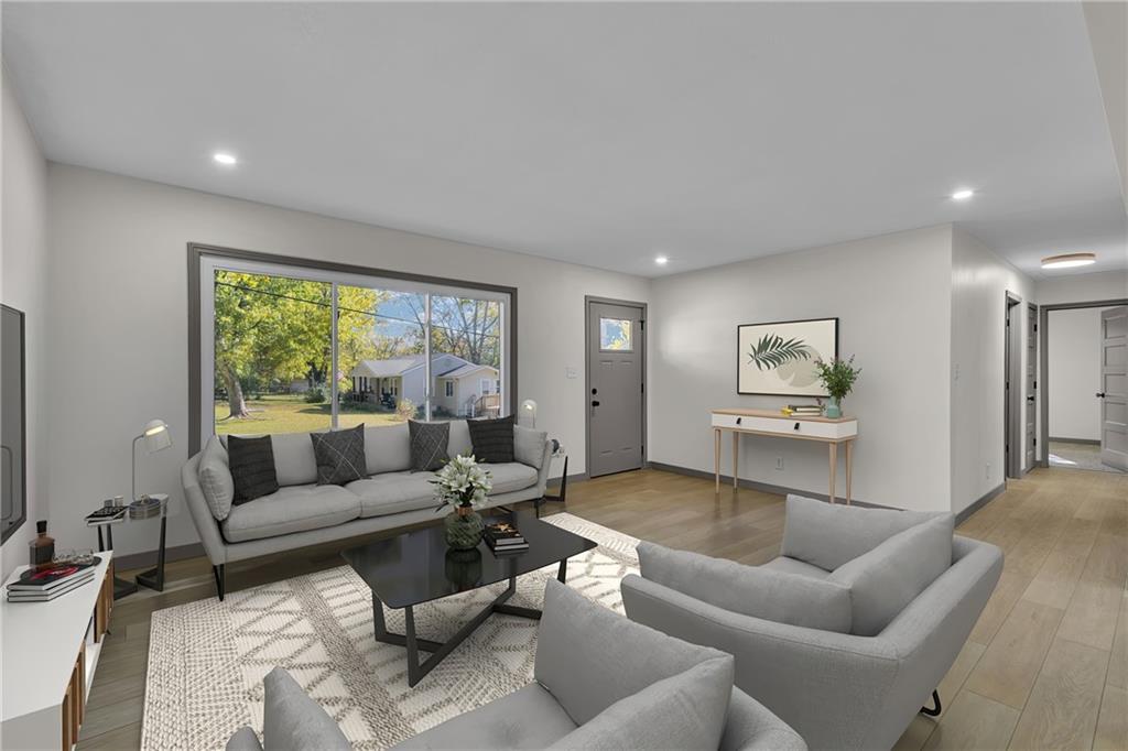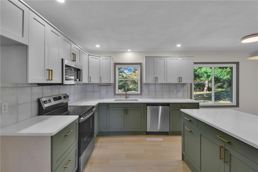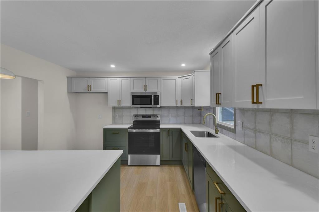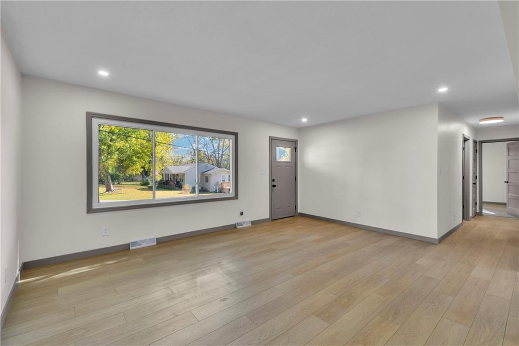 Completely renovated 4-bed, 2-bath home on a 0.71-acre lot in Pleasant Valley. This 2025 update blends quality materials with modern design across 2,267 sq ft of finished space. Main level features 1,144 sq ft with new cabinetry, quartz countertops, recessed LED lighting, and durable LVP flooring. Finished walk-out basement adds 1,123 sq ft including a 4th bedroom and flex living area with natural light. Both attached and detached garages offer ample parking and storage. Updates include new windows and water heater (2025). Large 0.71-acre lot offers room for future outdoor projects or garden space. Easy access to I-35, Liberty retail corridor, and parks within 1 mile. A turnkey option for buyers seeking move-in-ready space in Pleasant Valley with modern finishes and functional layout.