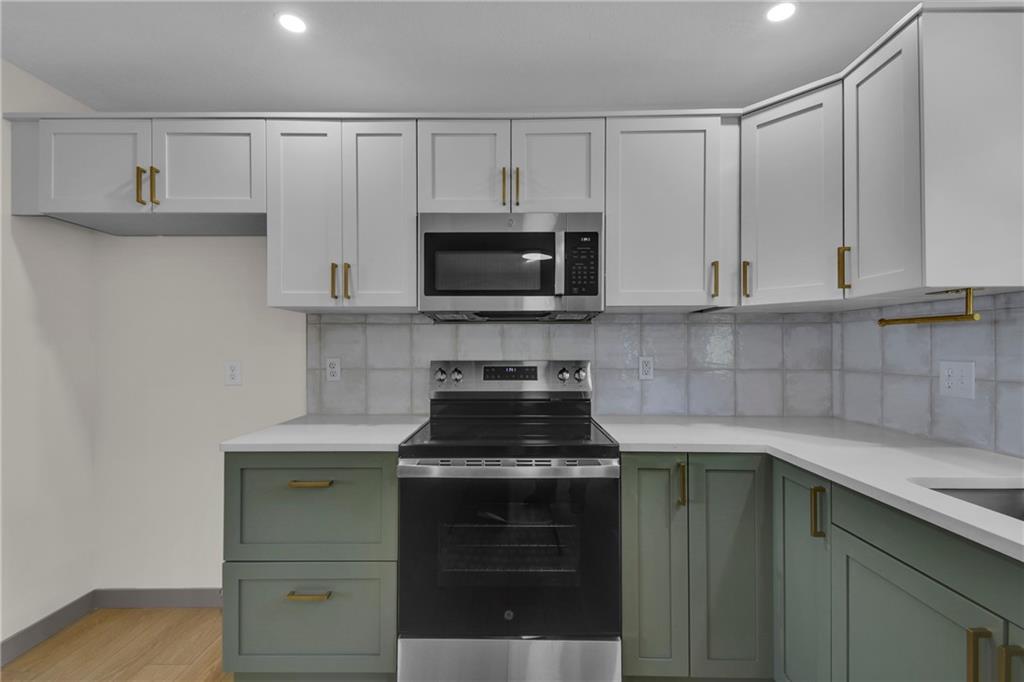 - Equipment Dishwasher, Disposal, Microwave, Electric Range, Stainless Steel Appliance(s)