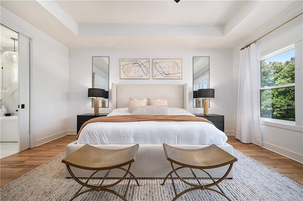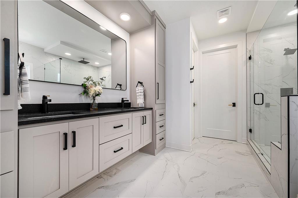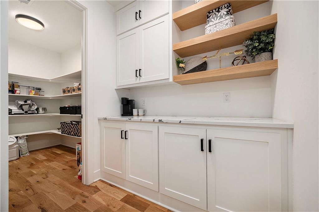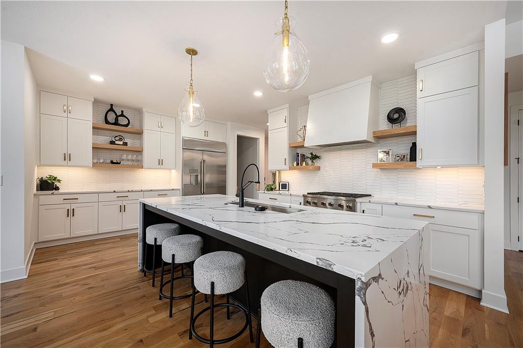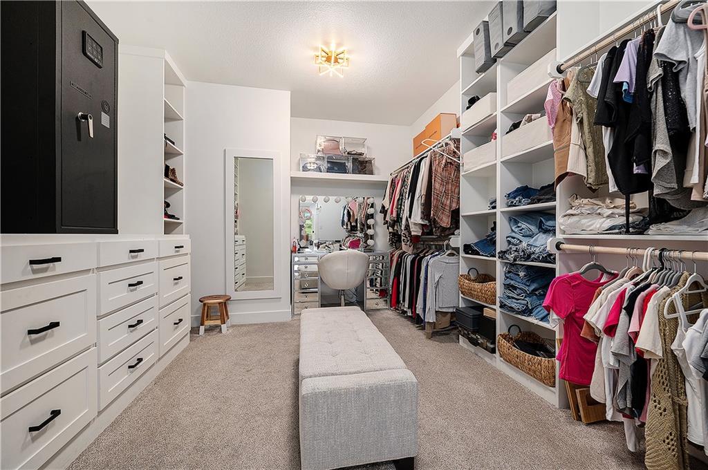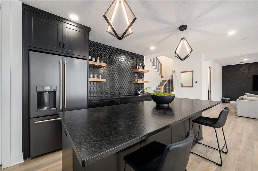 Welcome to this stunning custom reverse 1.5-story home, set on a beautifully manicured 3.62-acre lot. From the moment you arrive, you’ll notice the meticulous landscaping, treed-lined driveway, and custom stone path leading to the striking 10′ double entry doors. The side-entry 3-car garage features epoxy flooring and adds to the home’s clean, modern appeal. Inside, 10’ ceilings and hardwood floors run throughout the main level. The east wing of the home was expanded to accommodate spacious bedrooms and an impressive primary walk-in closet. The primary boasts a tray ceiling with ceiling fan, the luxurious ensuite includes a freestanding tub, double vanity, and a walk-in shower. The open-concept living room features a handcrafted ceiling design and a Roman Clay gas fireplace. Black Pella windows provide picturesque views of the backyard and pool, while flooding the living area and kitchen with natural light. No detail was spared in the designer kitchen, complete with a waterfall-edge quartz island, custom cabinetry, tile backsplash wall, wrapped hood vent, floating shelves, and 6-burner gas stove. A coffee bar, butler’s pantry, and walk-in pantry add functionality. Downstairs offers an expansive open layout with 10’ ceilings, luxury vinyl plank flooring, full bath, full bar and half bath. The show-stopping basement bar features an oversized black quartz island, sink, custom cabinetry, tile feature wall, and floating shelves. Two additional bedrooms and a third full bathroom complete the lower level. The storage room has been converted into a home gym and includes John Deere doors that open to pool deck. Outdoors, enjoy a private oasis with a beautifully landscaped Pinnacle fiberglass 35′ in-ground pool, with retractable cover, retaining wall, ambient lighting, and tree-lined east boundary. Convenient pool storage is tucked beneath the deck. This home offers luxury, privacy, and custom craftsmanship at every turn.