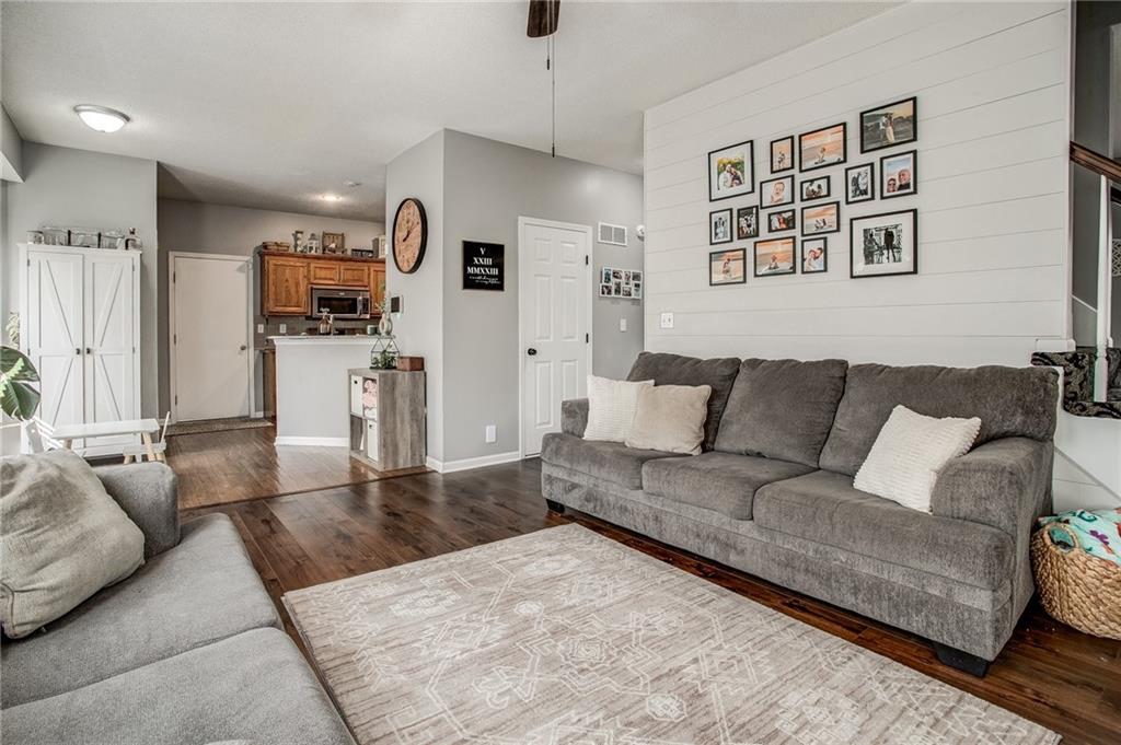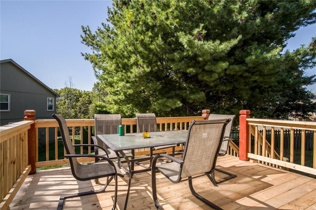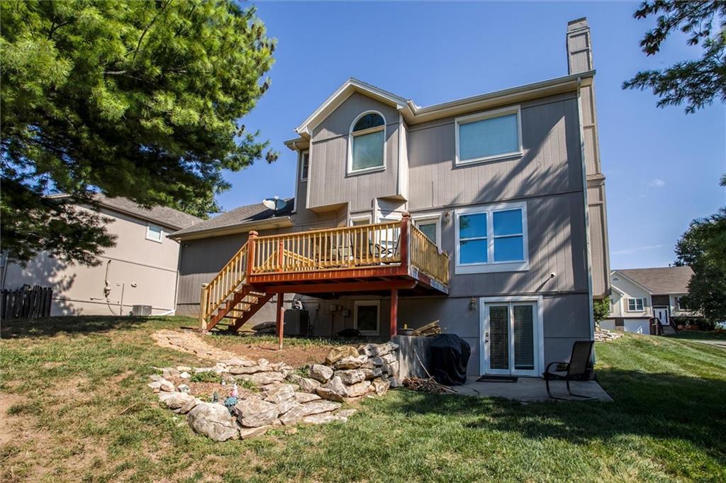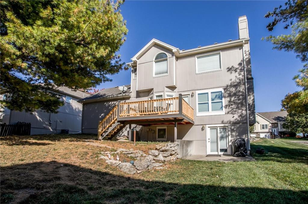This charming two-story residence offers a welcoming front porch and a comfortable layout designed for everyday living. The main level features beautiful hardwood floors, a spacious living room with a cozy fireplace, and a dining area perfect for family meals or entertaining guests. The kitchen provides plenty of cabinet space and easy access to the deck for outdoor dining or relaxing evenings. Upstairs, you’ll find generously sized bedrooms, including a comfortable primary suite with an en-suite bath and ample closet space. The finished walkout basement adds flexible living options for a recreation area, home office, or playroom—with room for a potential non-conforming 5th bedroom—and provides direct access to the backyard. Enjoy outdoor living on the elevated deck overlooking a large, fenced yard with mature landscaping and stone features. Additional highlights include a two-car garage, walkout basement, and a great location close to Smithville Lake, schools, and parks. This well-cared-for home blends comfort, space, and convenience in a quiet neighborhood setting!