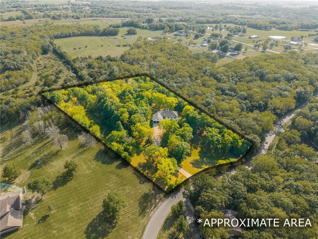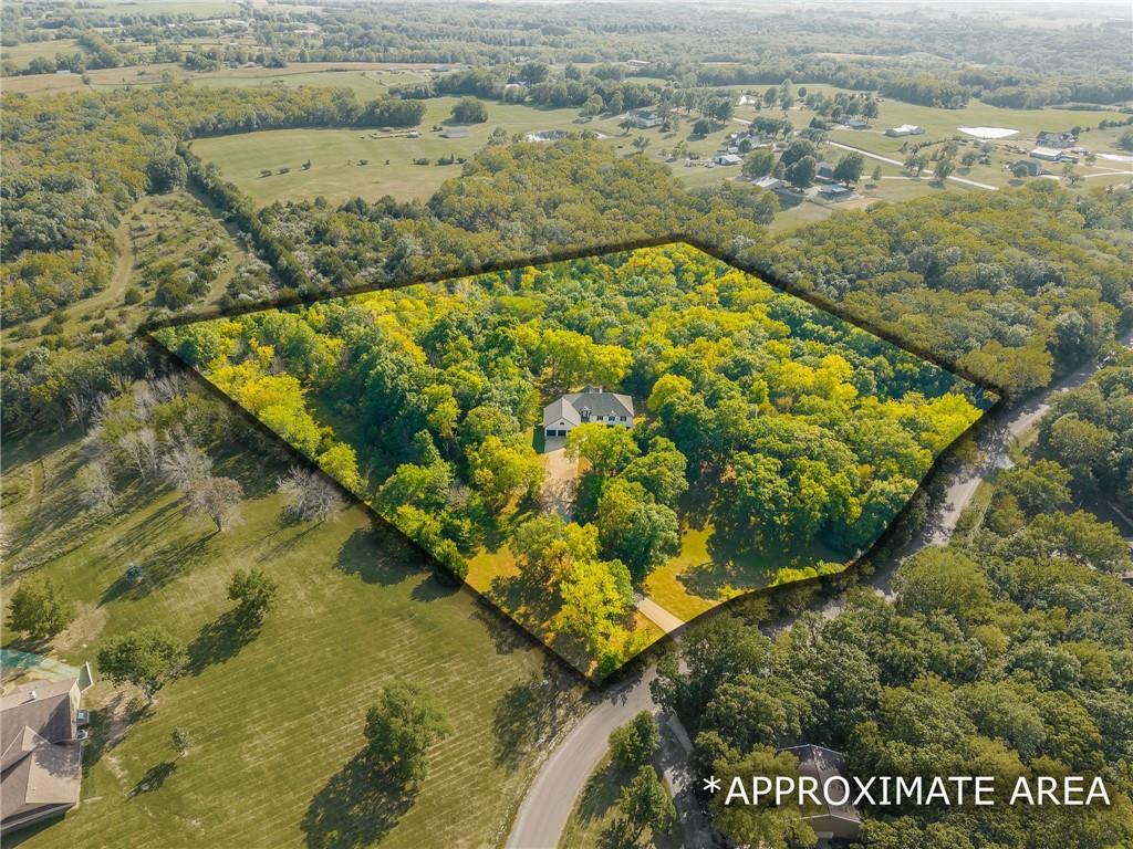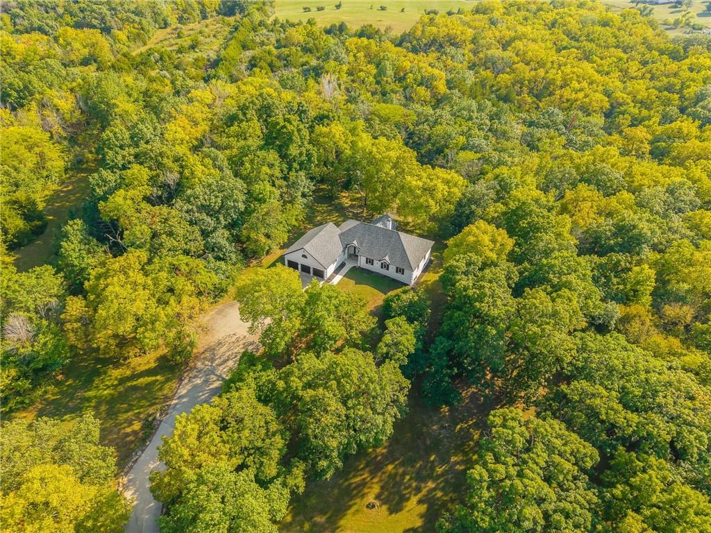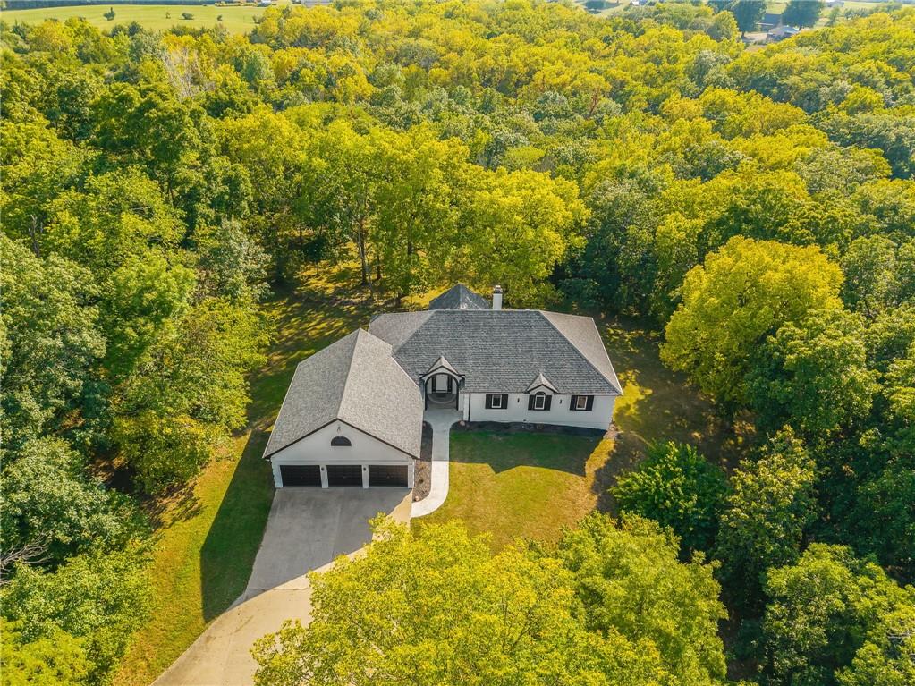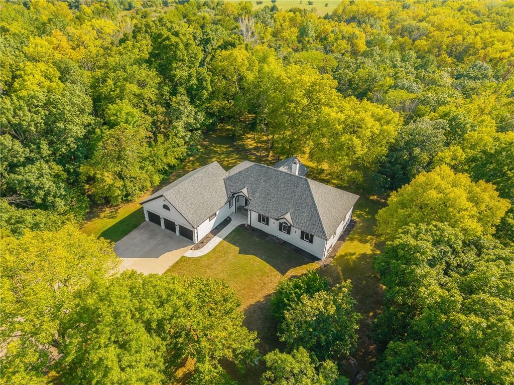 Rare Opportunity Including An Investment Land Parcel Original-Owner, 5-bedroom custom built ranch sits on approx. 7.38 wooded acres with lovely mature trees. Step inside to a marble-tiled entryway leading to open floor space of oversized living and dining areas creating perfect space for entertaining. This custom reverse plan has hard to find 3 bedrooms on the main level! The primary suite is spacious enough for your larger furniture; a king size bed, armoire & sitting area. Ensuite offers dual vanities, makeup counter, jetted tub, & shower. All bedrooms on main level have hardwood floors! Finished Lower level w/large recreation room, & two additional bedrooms & third full bath. Quality building cues are everywhere with Hardwood floors, 9+ft ceilings, wood-burning fireplace & 6-panel solid wooden doors. Updates include, 1 year new roof & gutters, fresh interior/exterior paint, & brand new carpet in the lower level. The unfinished area of the LL has plenty of storage or additional space to finish! Geothermal heating & cooling provides lower utility costs (approx. $220/month year-round) A dedicated laundry room & half bath, garage access, extra driveway side pad, w/electric & water to build a workshop if needed. Enclosed sunroom with windows offers inviting views of the woods! Utility shed in the backyard. Home is located on the south side of Smithville for easy commuting, Approx. 20 minutes to downtown KC & 15 minutes to KCI Airport/Zona Rosa. Listing includes home w/4.17 acres & adjacent 3.21 wooded acres that ALREADY has a separate address, and utilities at the street (water and electric) ready to connect. If privacy is what you like, bring your imagination and your builder! Dream about adding an outbuilding, a pickle ball court, or a swimming pool. Or separate the land to sell! The possibilities are endless! Separate the adjacent parcel now, ask agents for details on buying the house with 4.17 acres on its own, Seller is negotiable!