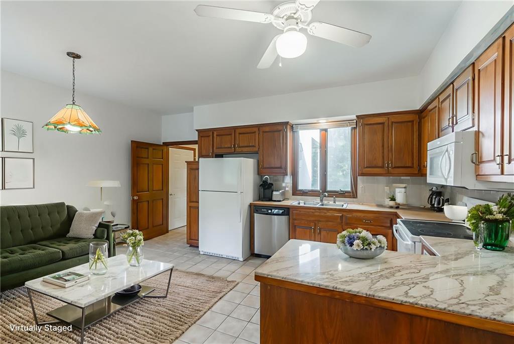 - Equipment Dishwasher, Disposal, Microwave, Refrigerator, Electric Range, Free-Standing Electric Oven