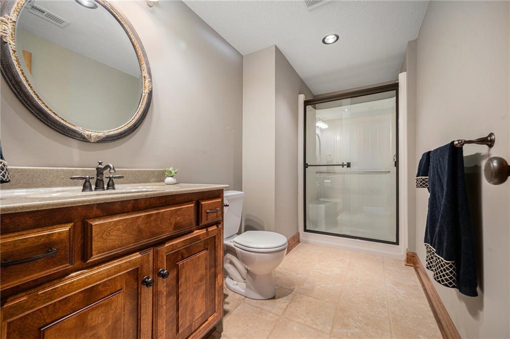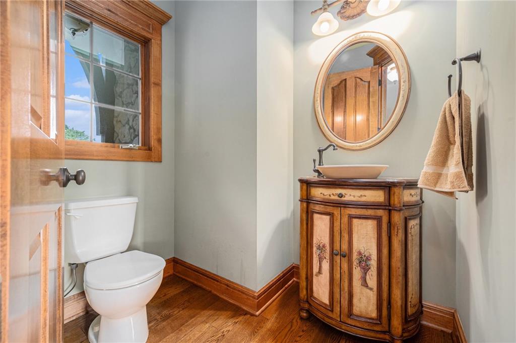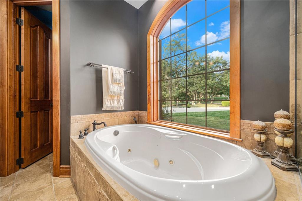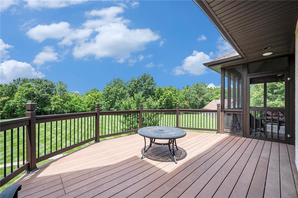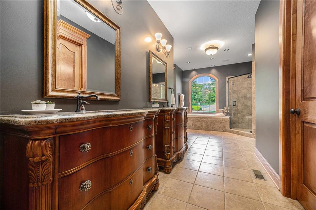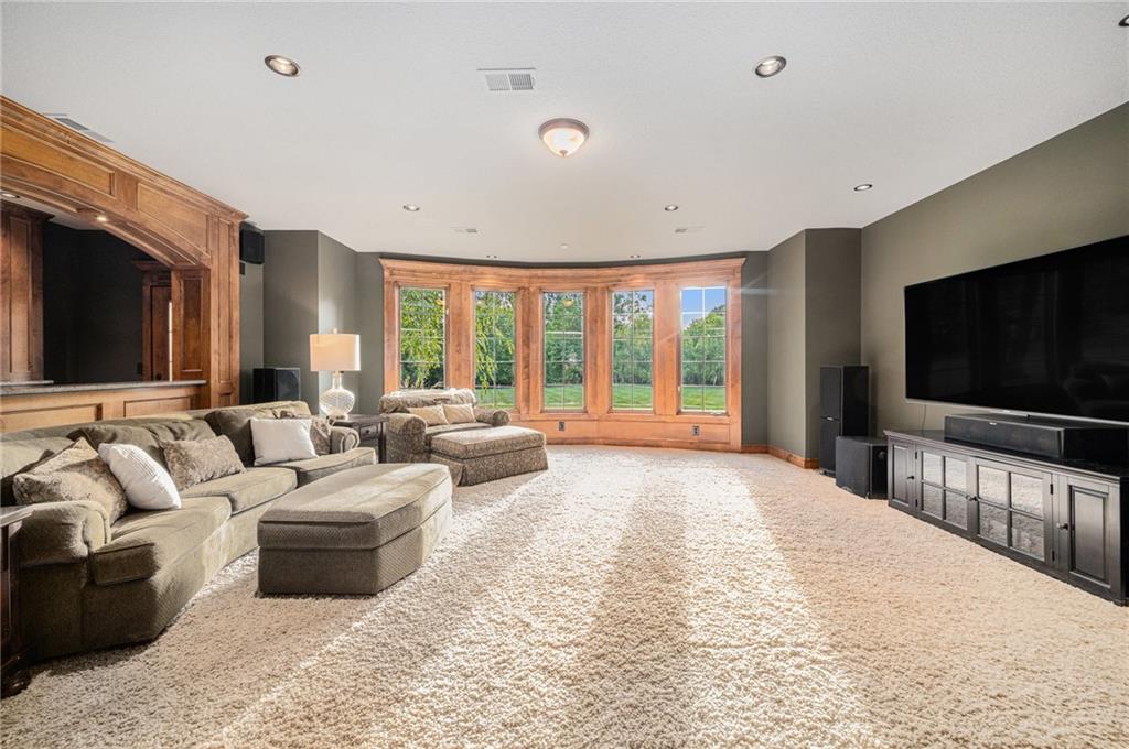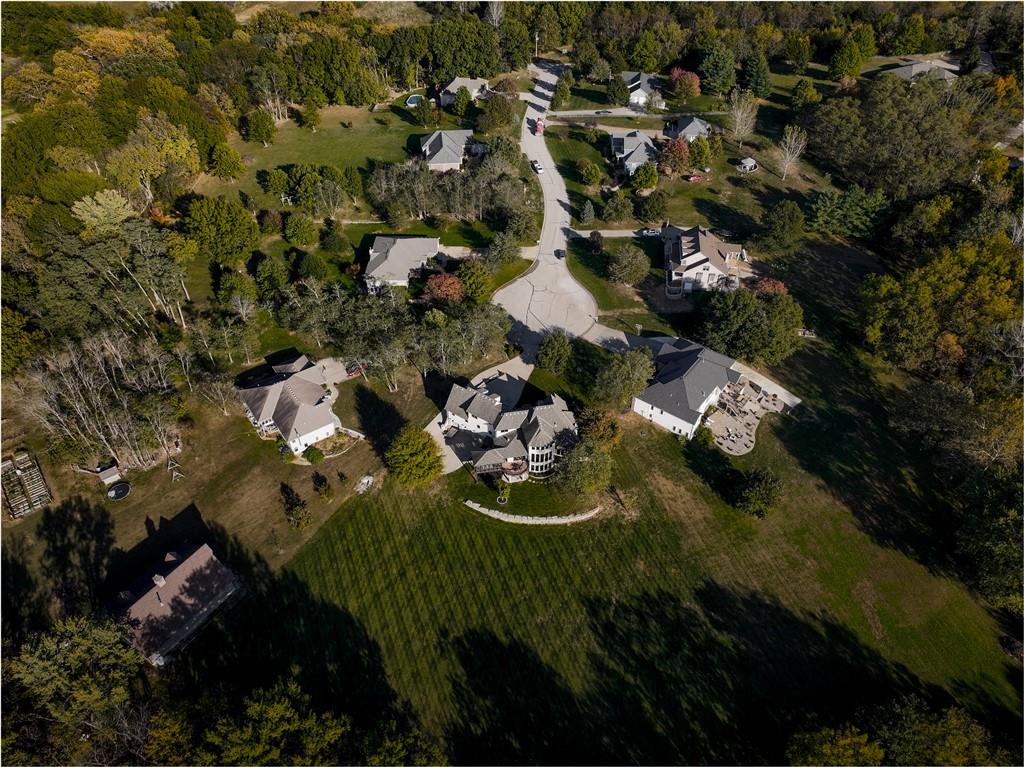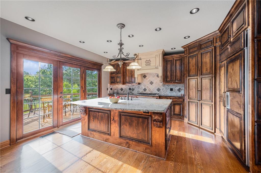 Tucked away on a quiet cul-de-sac in the desirable Strawberry Hill development, this impressive 1.5 story residence rests on a sprawling 1.76± acre lot. With quick access to The Litton Center, scenic walking trails, a play park & nearby Smithville Lake, the location offers both convenience & recreation. From the moment you arrive, the exterior showcases pride of ownership w/timeless curb appeal & meticulous care. Step inside to be greeted by a dramatic foyer featuring a curved staircase, soaring 2-story ceilings & rich, moody-traditional design details. Recently refinished hardwood floors, 2 geothermal HVAC systems (both in ground loop), computer-controlled Vantage Luxury Lighting, structured wiring & thoughtful upgrades throughout set this home apart. The great room makes a bold statement w/an arched wood entry, a striking stacked-stone fireplace flanked by custom built-ins & a wall of windows filling the space with natural light. The gourmet kitchen is designed for the chef at heart, offering knotty alder cabinetry, stone countertops, tile backsplash, built-in refrigerator, gas cooktop, oversized island & an exceptional walk-in pantry. Enjoy meals in the elegant formal dining room or the inviting 3-season room overlooking your private backyard. The main-level primary suite is a true retreat, boasting a coffered ceiling, spa-inspired ensuite w/dual custom vanities, large walk-in shower, jacuzzi tub & an expansive walk-in closet. Upstairs, discover 3 generously sized bedrooms, each with ample closet space & private or jack-and-jill bath access. The finished walkout lower level is designed as a full secondary living space—perfect for guests or multi-generational living. It includes a 2nd full kitchen, bedroom, bathroom, recreation/living areas, garage access & abundant storage. For entertaining, there’s even a theater/media room ready for movie nights or game day. Outside, the expansive backyard is ideal for gatherings, grilling, or tossing the football with friends.