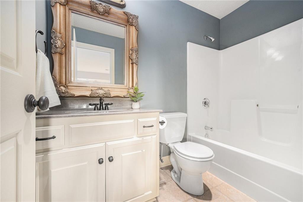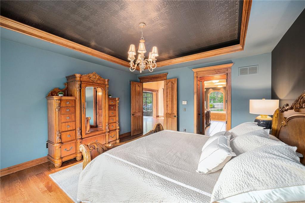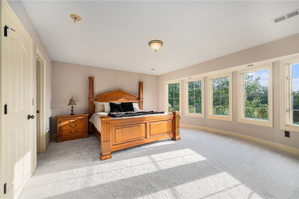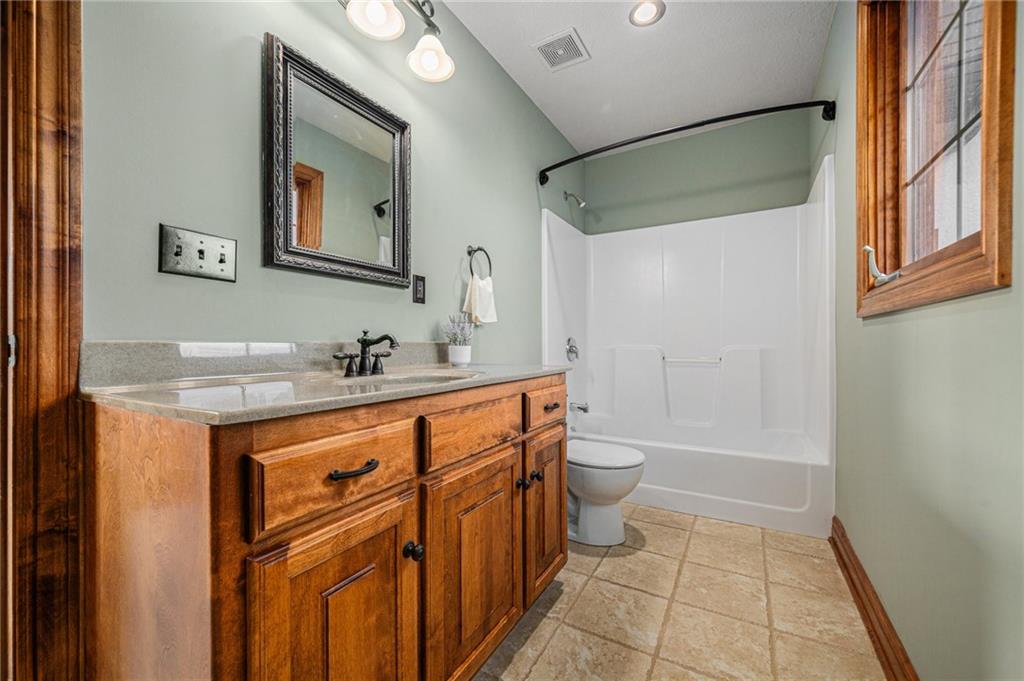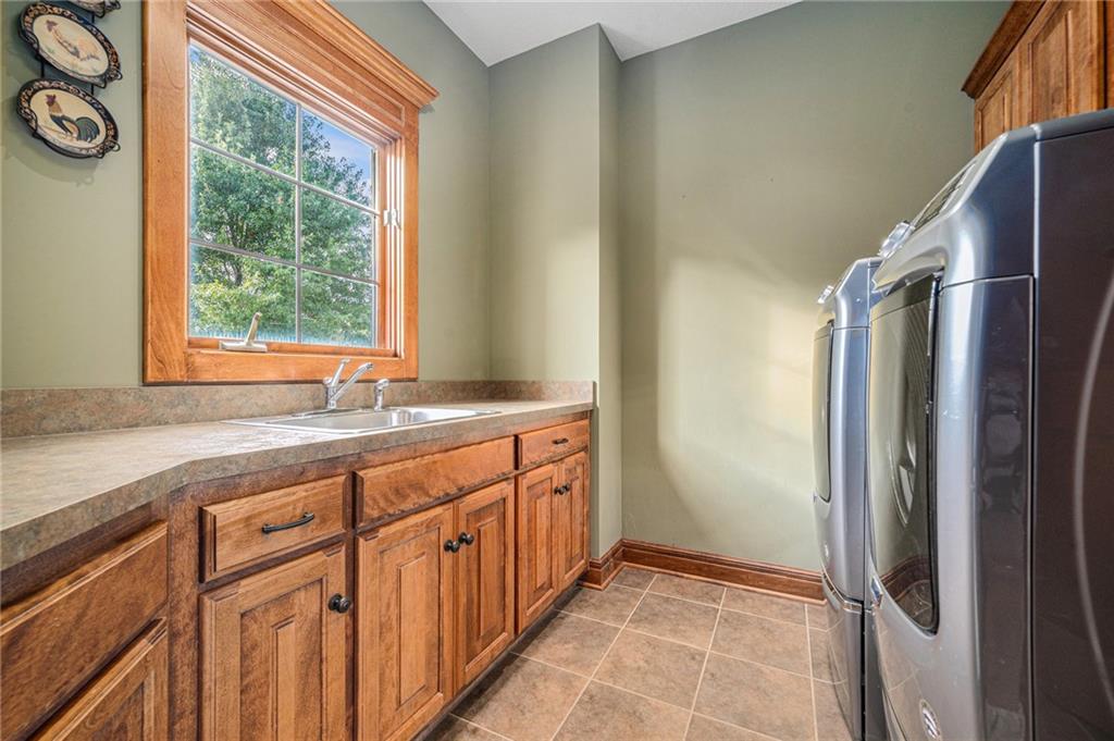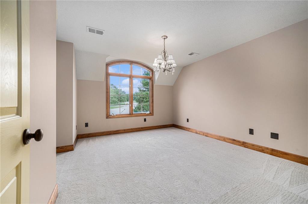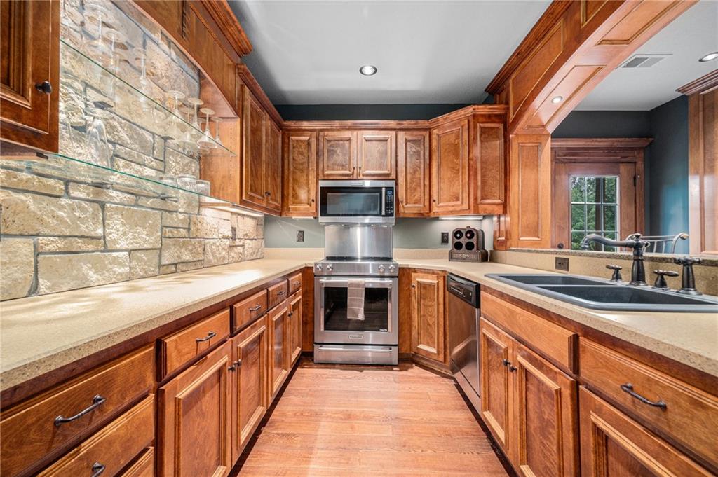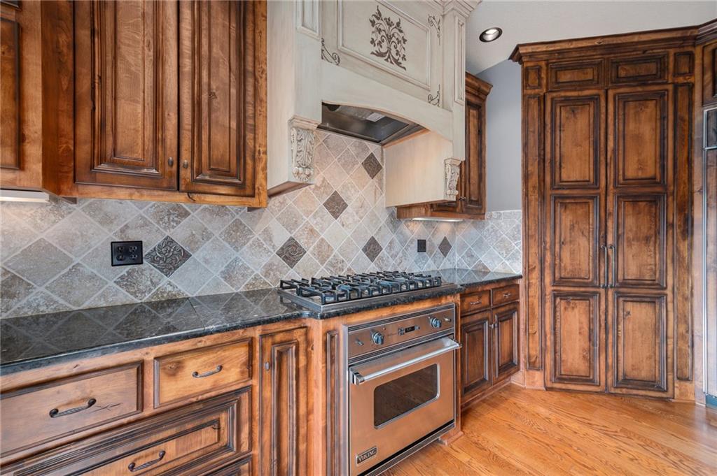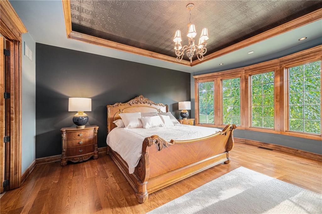 Tucked away on a quiet cul-de-sac in the desirable Strawberry Hill development, this impressive 1.5 story residence rests on a sprawling 1.76± acre lot. With quick access to The Litton Center, scenic walking trails, a play park & nearby Smithville Lake, the location offers both convenience & recreation. From the moment you arrive, the exterior showcases pride of ownership w/timeless curb appeal & meticulous care. Step inside to be greeted by a dramatic foyer featuring a curved staircase, soaring 2-story ceilings & rich, moody-traditional design details. Recently refinished hardwood floors, 2 geothermal HVAC systems (both in ground loop), computer-controlled Vantage Luxury Lighting, structured wiring & thoughtful upgrades throughout set this home apart. The great room makes a bold statement w/an arched wood entry, a striking stacked-stone fireplace flanked by custom built-ins & a wall of windows filling the space with natural light. The gourmet kitchen is designed for the chef at heart, offering knotty alder cabinetry, stone countertops, tile backsplash, built-in refrigerator, gas cooktop, oversized island & an exceptional walk-in pantry. Enjoy meals in the elegant formal dining room or the inviting 3-season room overlooking your private backyard. The main-level primary suite is a true retreat, boasting a coffered ceiling, spa-inspired ensuite w/dual custom vanities, large walk-in shower, jacuzzi tub & an expansive walk-in closet. Upstairs, discover 3 generously sized bedrooms, each with ample closet space & private or jack-and-jill bath access. The finished walkout lower level is designed as a full secondary living space—perfect for guests or multi-generational living. It includes a 2nd full kitchen, bedroom, bathroom, recreation/living areas, garage access & abundant storage. For entertaining, there’s even a theater/media room ready for movie nights or game day. Outside, the expansive backyard is ideal for gatherings, grilling, or tossing the football with friends.