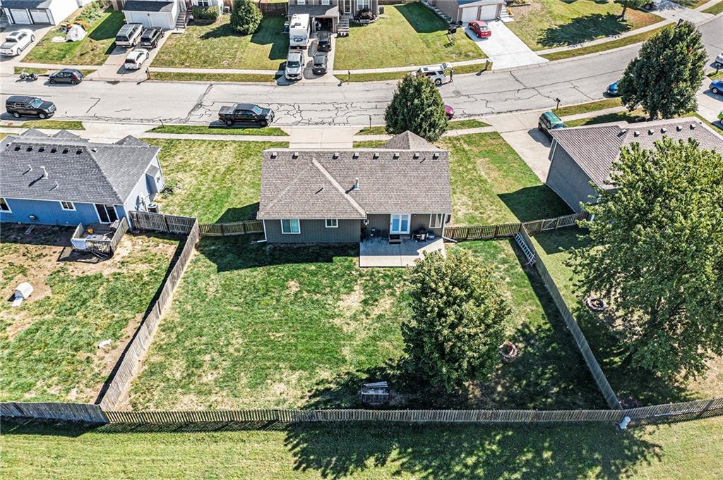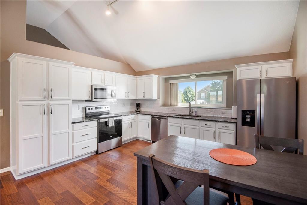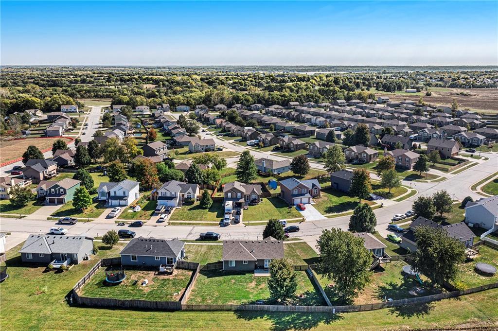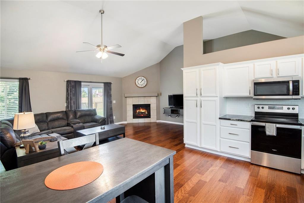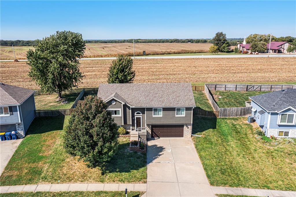 Stunning split-level home just minutes from Smithville Lake! Enjoy a large, fully fenced backyard and beautiful hardwood floors that flow through the living room and kitchen. The living area features a cozy corner fireplace, while the spacious kitchen offers painted cabinets, updated appliances, vaulted ceilings, and a bright daylight window over the sink. The primary suite includes a raised ceiling, walk-in closet, and private bath. Downstairs, you’ll find a finished basement with a family room and plenty of storage. Step outside to the large patio—perfect for grilling and entertaining. Don’t miss out on this one!