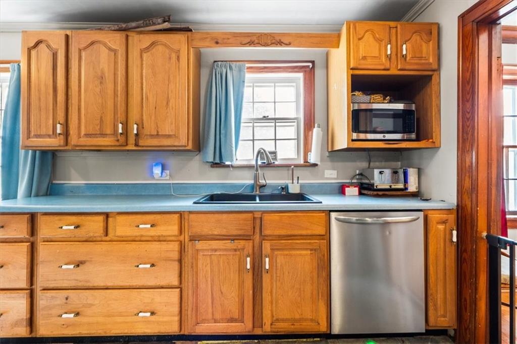Upon entry, you’re greeted by beautiful hardwood floors and a cozy fireplace anchoring the great room, which flows seamlessly into the eat-in kitchen bathed in natural light from abundant windows. The thoughtful layout includes a bonus enclosed porch/patio off the main living area—perfect for morning coffee or a quiet retreat. Practical touches like an attached one-car garage and a full unfinished stone basement provide additional storage and workspace options.