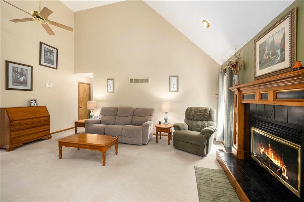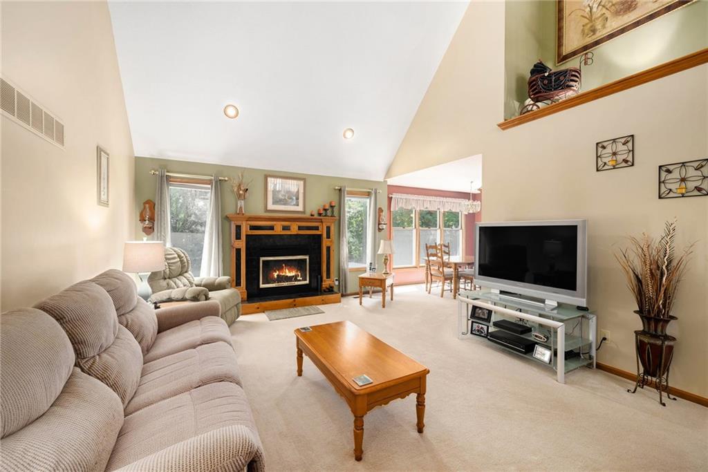 Step inside the inviting foyer with soaring vaulted ceilings and immediate views into the expansive living room, highlighted by dramatic 2-story ceilings and a cozy fireplace. The well-appointed kitchen features abundant cabinetry, a breakfast bar with overhang seating, pantry with pull-out shelving, and both a sun-filled breakfast nook and a formal dining room ideal for entertaining. Conveniently located off the kitchen, the laundry room provides easy access to the garage.