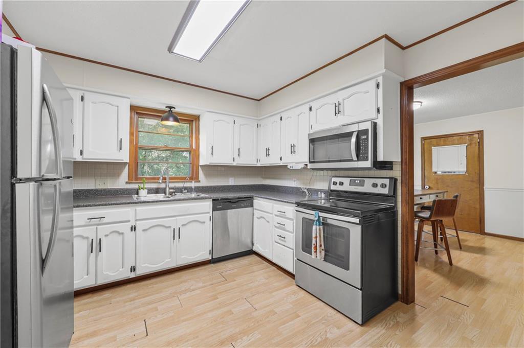 - Equipment Dishwasher, Disposal, Microwave, Refrigerator, Electric Range, Stainless Steel Appliance(s)