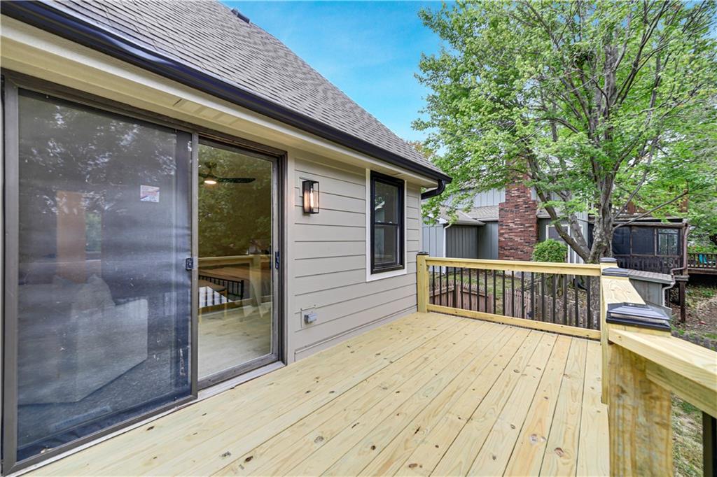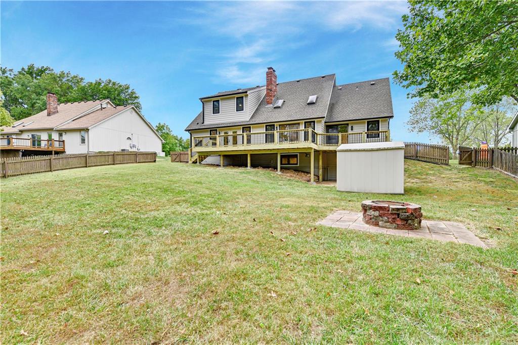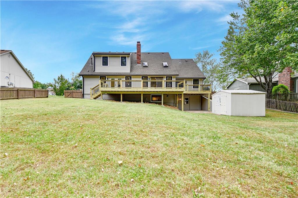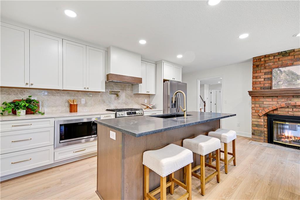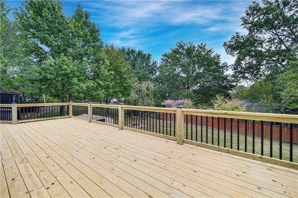 Your chance to live in Weatherby lake with no HOA!! Step into this beautifully renovated home where modern elegance meets timeless design. The open layout is enhanced by vaulted ceilings, creating a bright and spacious feel throughout. The kitchen is a true showpiece, featuring brand-new cabinetry, Taj Mahal quartz countertops, with a matching backsplash, and a walk in pantry. From the kitchen, step out onto a brand-new 500 sq. ft. deck that spans the entire length of the home — ideal for entertaining, dining, or simply relaxing outdoors.