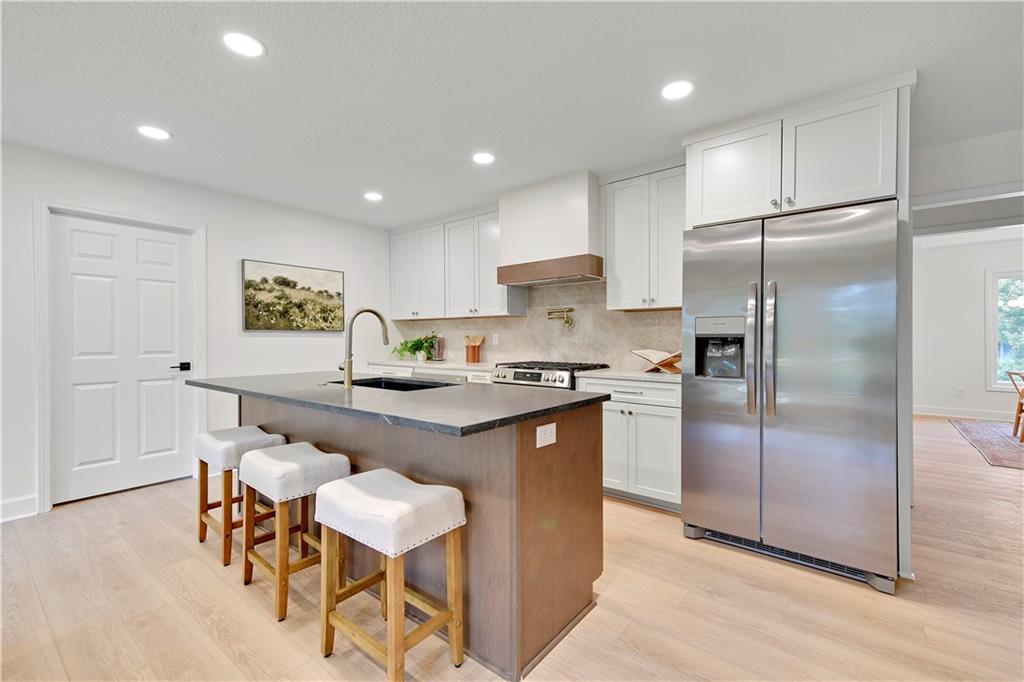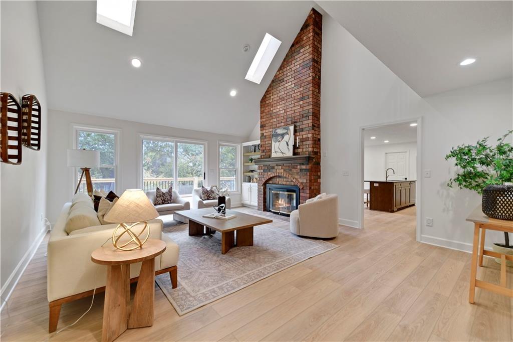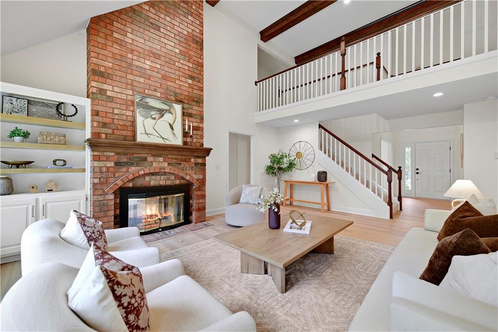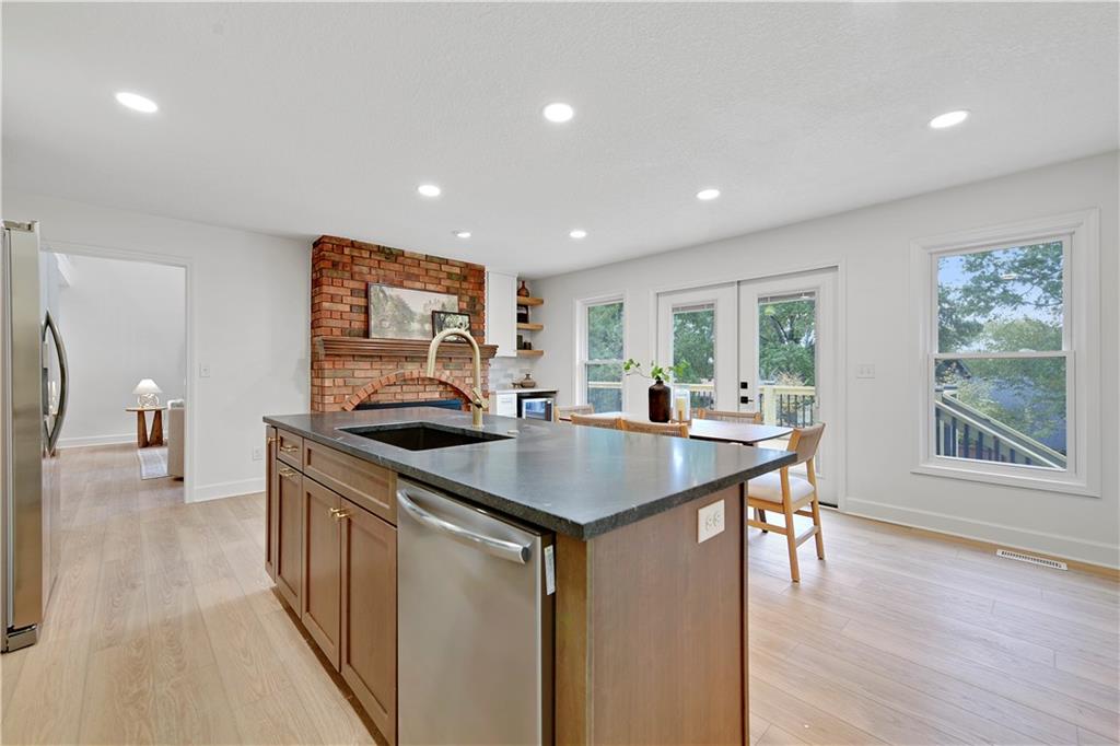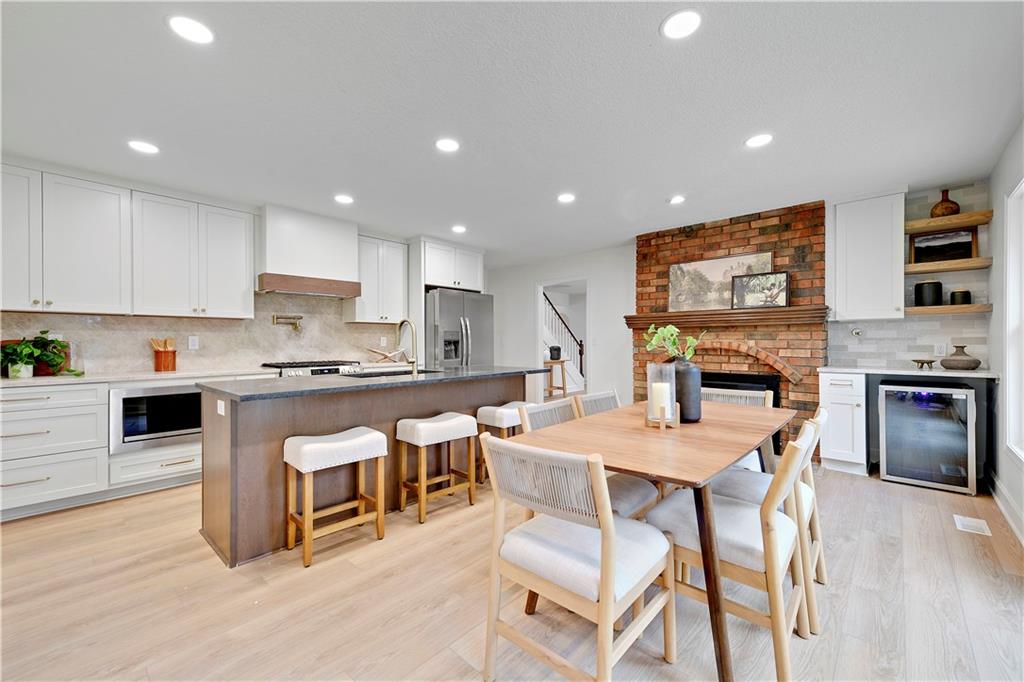 Your chance to live in Weatherby lake with no HOA!! Step into this beautifully renovated home where modern elegance meets timeless design. The open layout is enhanced by vaulted ceilings, creating a bright and spacious feel throughout. The kitchen is a true showpiece, featuring brand-new cabinetry, Taj Mahal quartz countertops, with a matching backsplash, and a walk in pantry. From the kitchen, step out onto a brand-new 500 sq. ft. deck that spans the entire length of the home — ideal for entertaining, dining, or simply relaxing outdoors.