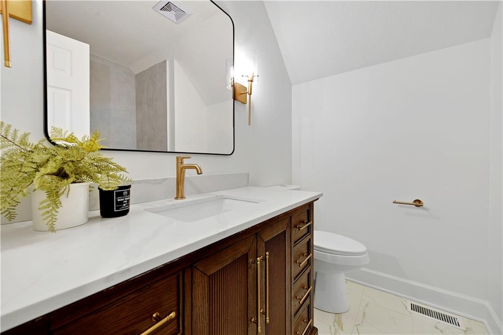 This home has a central vacuum system with a toe-kick under the kitchen island—just sweep dirt and crumbs toward it, and they’re gone! No more bending over with a dustpan.