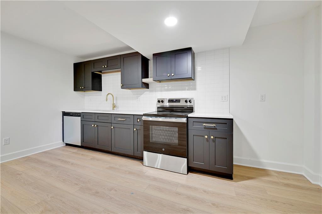 - Equipment Dishwasher, Disposal, Exhaust Fan, Microwave, Refrigerator, Built-In Electric Oven, Gas Range, Stainless Steel Appliance(s)