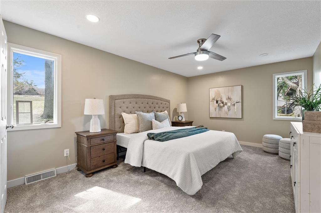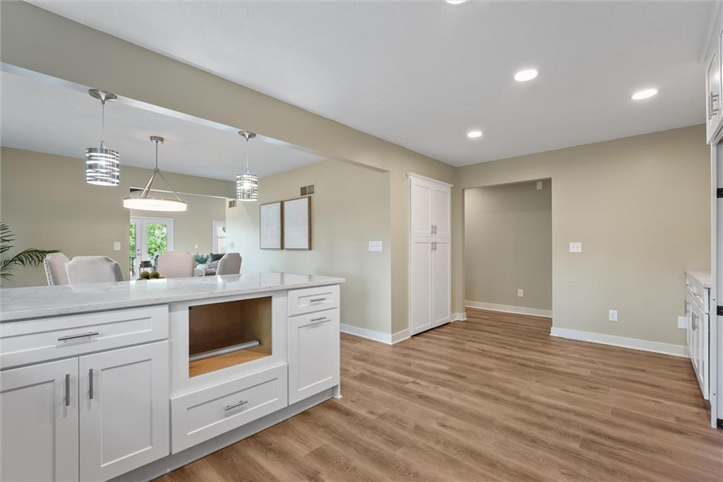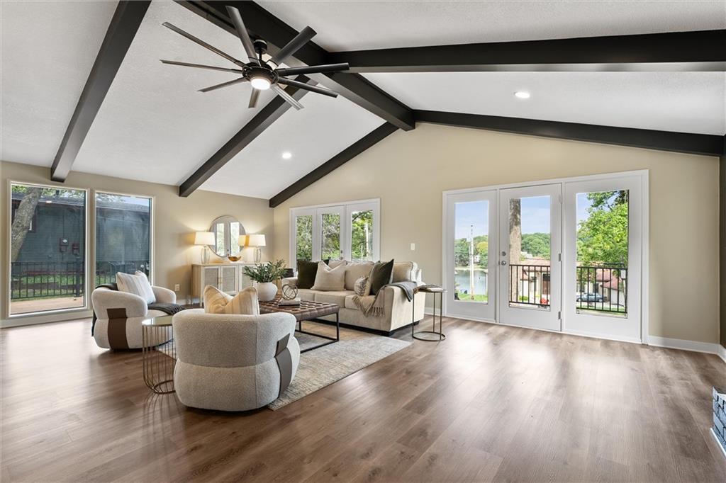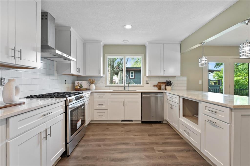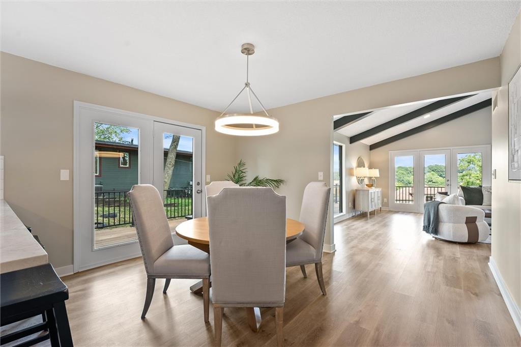 Amazing updated Raised Ranch in Weatherby Lake! This home features a new kitchen, updated baths, new flooring, exterior upgrades, and more. Enjoy stunning lake views from the expansive new deck, and take advantage of its location within walking distance to the community’s C-point access area, complete with a swim beach, picnic tables, pavilion, and more. The main level boasts vaulted ceilings and large picture windows, flooding the space with natural light. It includes a formal dining room, a primary suite, an additional bedroom and bathroom, plus a convenient laundry room. The lower level offers a cozy family room and two more bedrooms with a Jack-and-Jill bathroom. The oversized garage is a bonus. Embrace the Lake Lifestyle, with immediate access to swimming, fishing, community clubs, playgrounds, and so much more. Experience the magic of Lake Life and make this home yours just in time for the holidays!