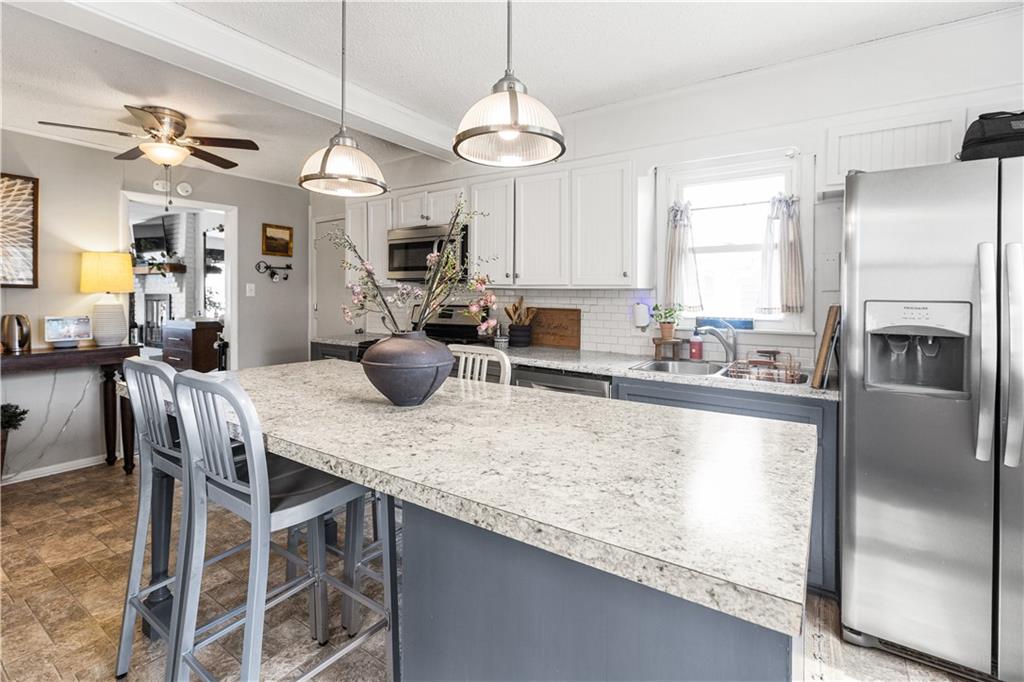 - Interior Features Ceiling Fan(s), Kitchen Island, Painted Cabinets