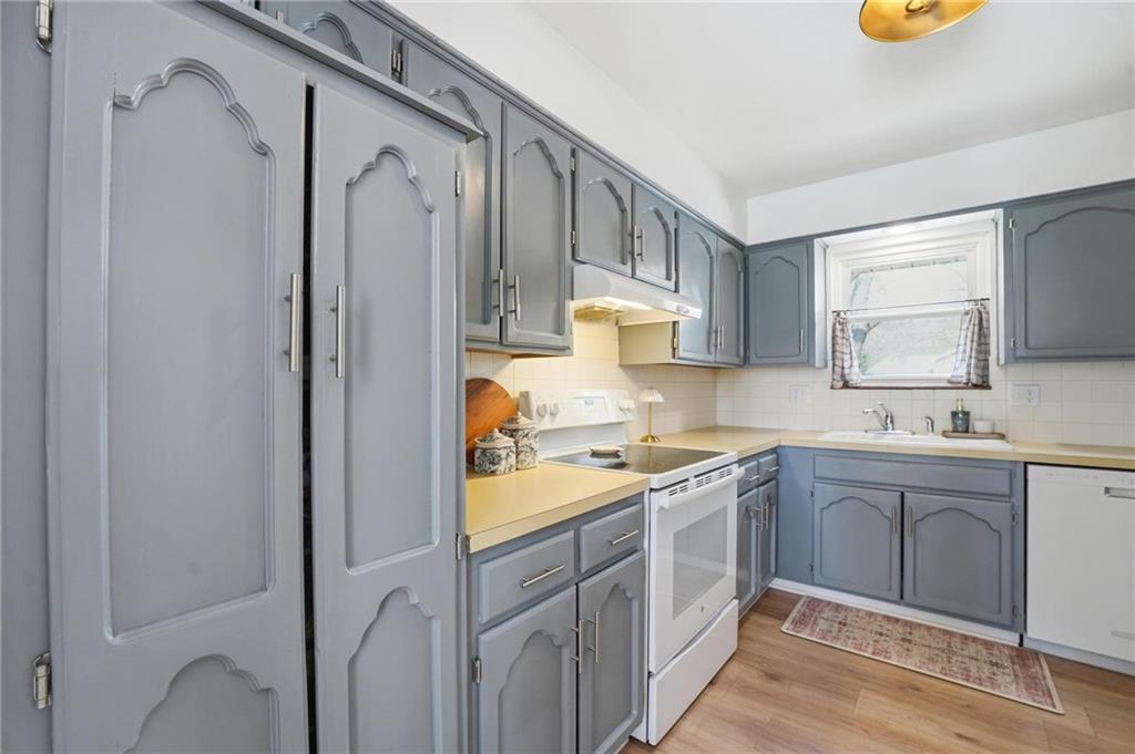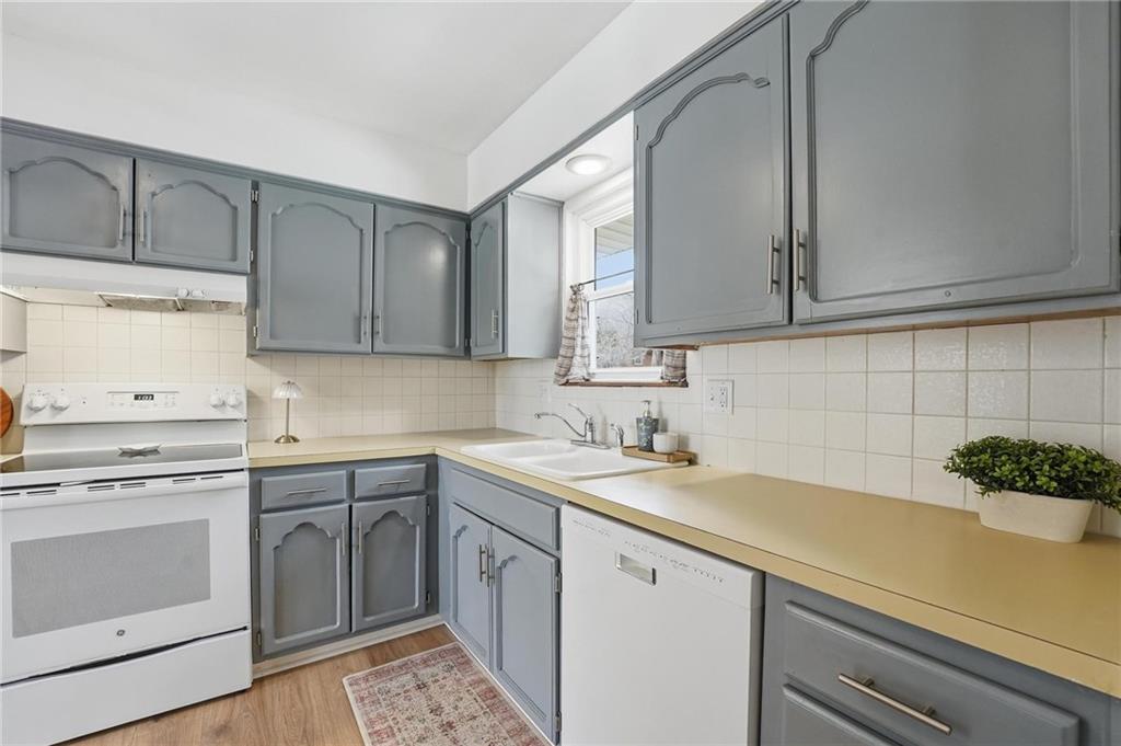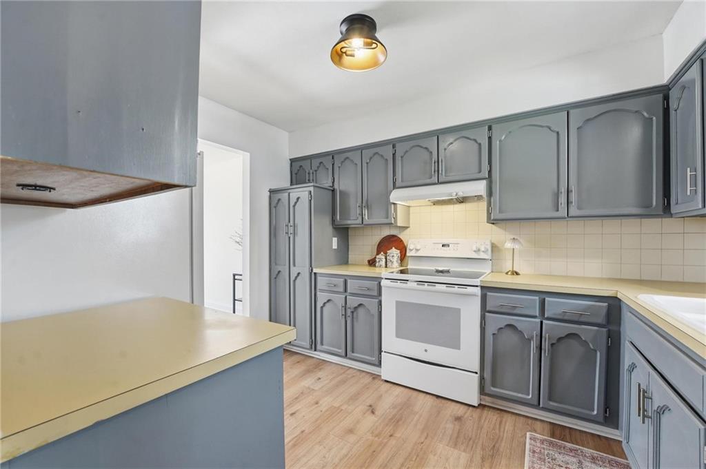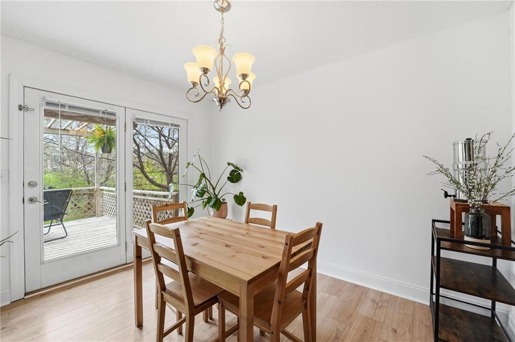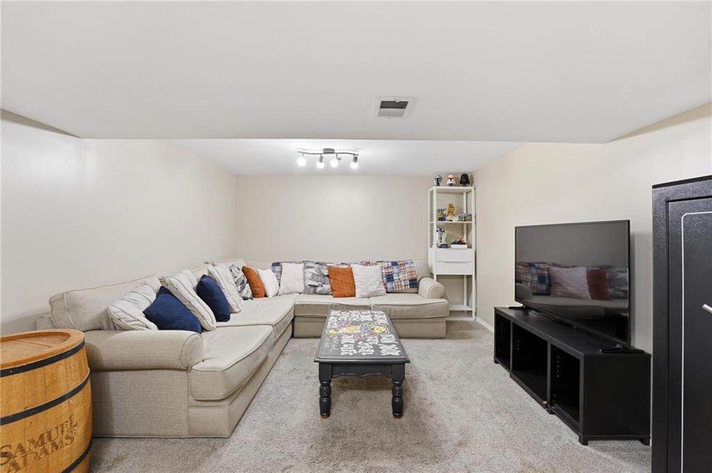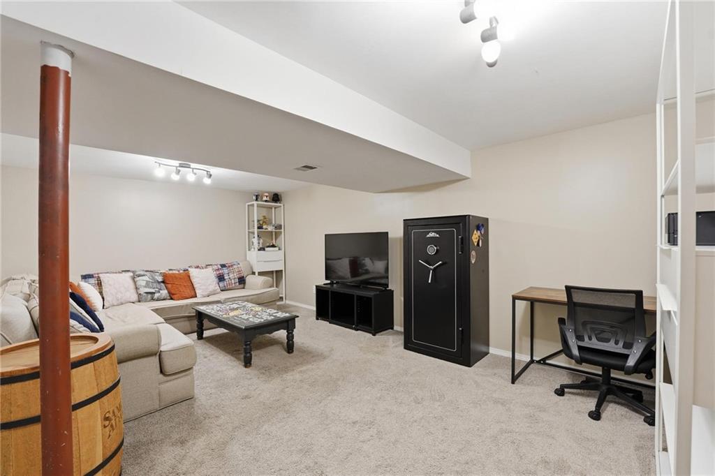 This stunning raised ranch home has been beautifully updated with modern luxury vinyl plank flooring, new carpeting, a new roof, a tiled primary bathroom shower, and fresh paint throughout. Upon entering, you’ll notice the high ceilings and wooden beam accents that create a spacious atmosphere, warmly complemented by a charming stone fireplace. The layout seamlessly flows into a dining room featuring a back door that leads to the deck. The kitchen is equipped with ample cabinetry and smart counter space for all your culinary needs. Down the hallway, you will find a coat closet, linen closet, a full bathroom with a large vanity and a shower over the tub, and three cozy bedrooms at the end of the hall, each adorned with plush carpeting. The primary bedroom offers generous space and a stunning ensuite, complete with a new tiled shower, vanity, and mirror. The finished basement includes a recreation room and a laundry room with fantastic storage, including storage shelves that stay. The two car garage provides access to the basement, featuring space for a coat rack and additional storage behind the shutter doors in the recreation room. The back deck, accessible from the dining room via the back door, overlooks a fenced backyard that backs up to trees, creating a serene retreat. This home is situated in a quiet cul-de-sac within the North Kansas City School District, with Staley High School as the designated attendance school.