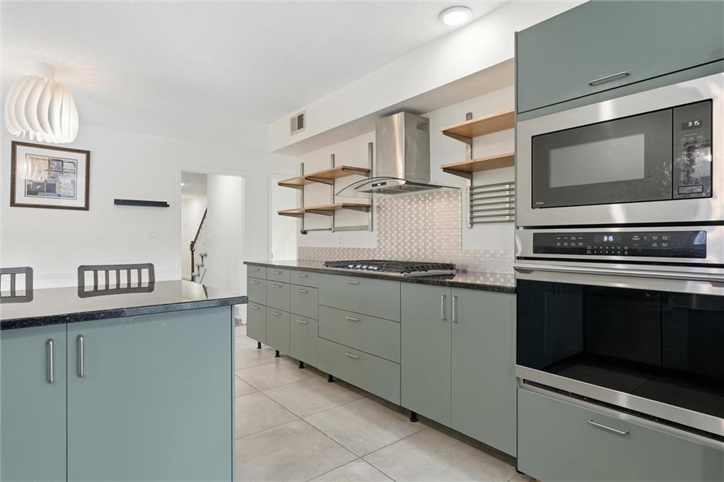 - Appliances Dishwasher, Disposal, Microwave, Electric Range, Stainless Steel Appliance(s)