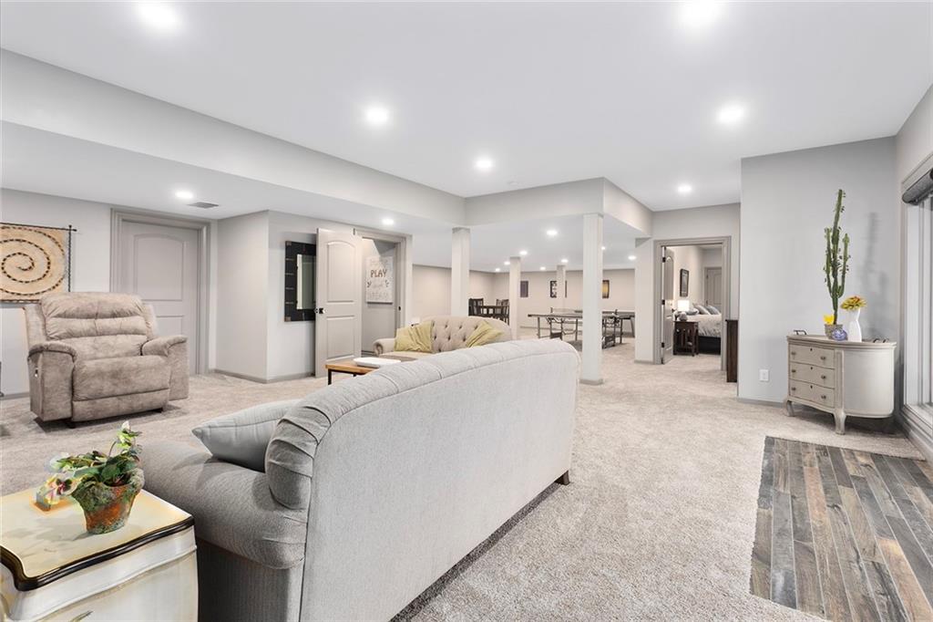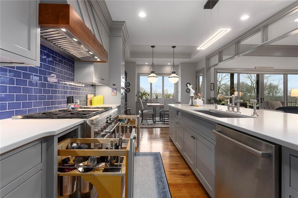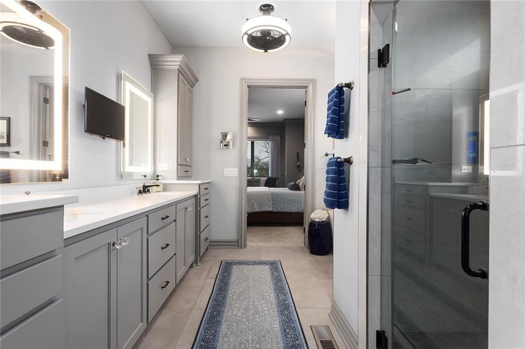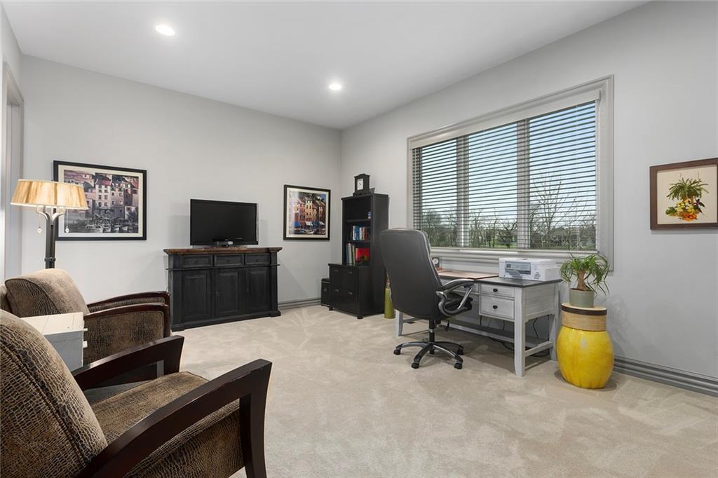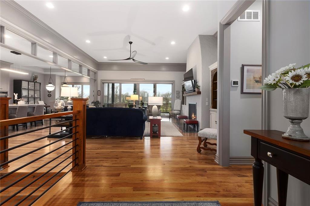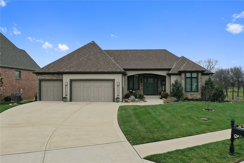 One-of-a-kind modified Haventon floorplan built by Homes by Chris in the remarkable Tiffany Greens subdivision, featuring all of the custom upgrades you could imagine! Classy and convenient, this recently-built home was thoughtfully appointed with top-quality materials and a meticulous eye for details that prove both beautiful and useful. Step into the expansive open-concept living/kitchen combo and enjoy gorgeous views of the Tiffany Greens golf course, or stare in awe at the stunning Italian plaster fireplace and upgraded trim package, complete with a striking seeded glass transom. The 12-foot kitchen island with quartz countertop is the heart of the home, a perfect place to congregate for after school snacks or elevated evening hors d’oeuvres. Homeowners who enjoy entertaining will gush over the luxury kitchen appliances including a 42″ range, large workstation sink, sub zero refrigerator, and three ovens! Inset kitchen cabinets with soft close doors and storage upgrades plus a generous butler’s pantry are a home cook’s dream come true. The spacious primary bedroom features a bathroom with custom cabinets and heated tile floors with a massive walk-in closet. Casement windows, natural hickory floors, 8-foot solid wood doors, automatic window treatments, direct hardwire for internet, and too many other upgrades and special touches to name. If you have ever wanted to build a custom home but the process feels intimidating, this is the house for you! Enjoy all of the features of an intentionally designed home with none of the decision fatigue. An opportunity you don’t want to miss!