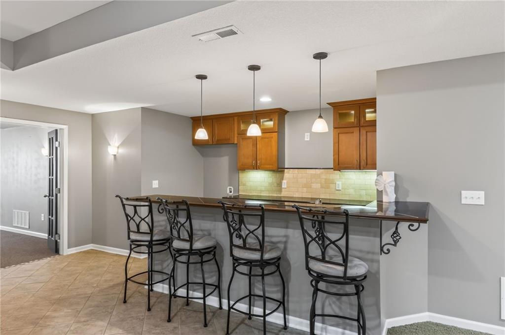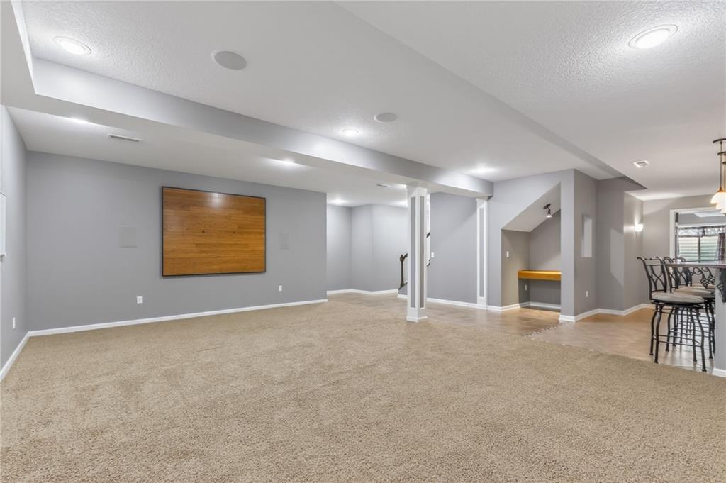 The finished basement is ideal for entertaining or multi-generational living, featuring a home theater area, wet bar, full bathroom, 5th bedroom, and a walk-in cedar closet.