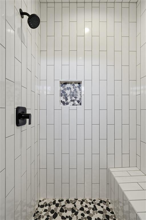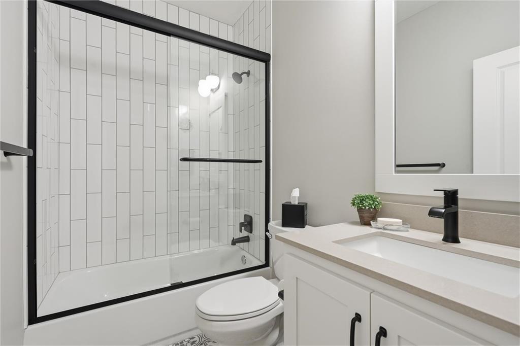 The kitchen is equipped with high-end GE Café smart appliances, including a dual fuel range, convection microwave, dishwasher and French door refrigerator—ideal for entertaining. Additional features include 42” soft-close cabinetry, a Silgranite sink, matte black fixtures, and a built-in buffet with tile to the ceiling.