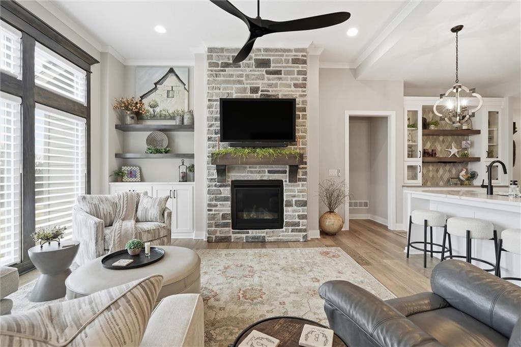 Inside, the home is loaded with upgrades that enhance both style and function. The exterior features durable horizontal lap siding and a full-house Zip System for efficiency and weather protection. Interior highlights include upgraded lighting, board and batten accent walls, an oak picture shelf in the dining area, and a striking stone fireplace.