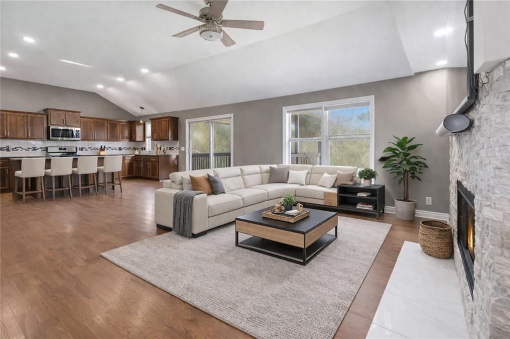 - Interior Features Ceiling Fan(s), Custom Cabinets, Kitchen Island, Pantry, Stained Cabinets, Vaulted Ceiling(s), Walk-In Closet(s)