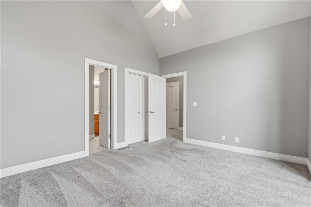 - Interior Features Ceiling Fan(s), Stained Cabinets, Walk-In Closet(s)