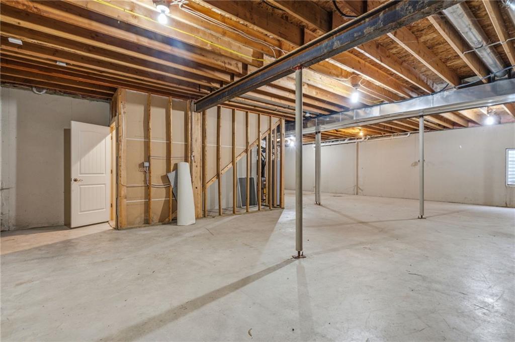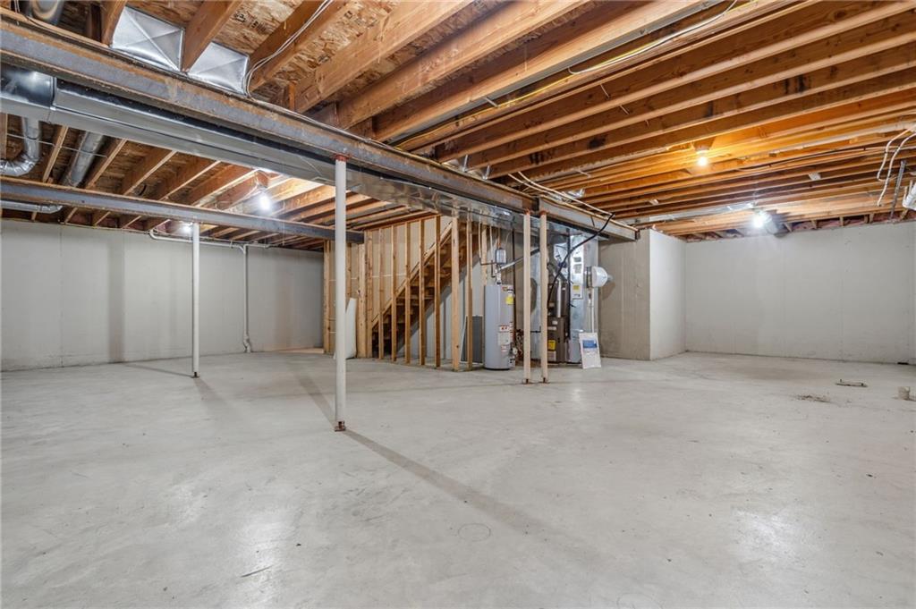 The unfinished basement offers excellent potential for additional living space, including a large window suitable for a future third bedroom.