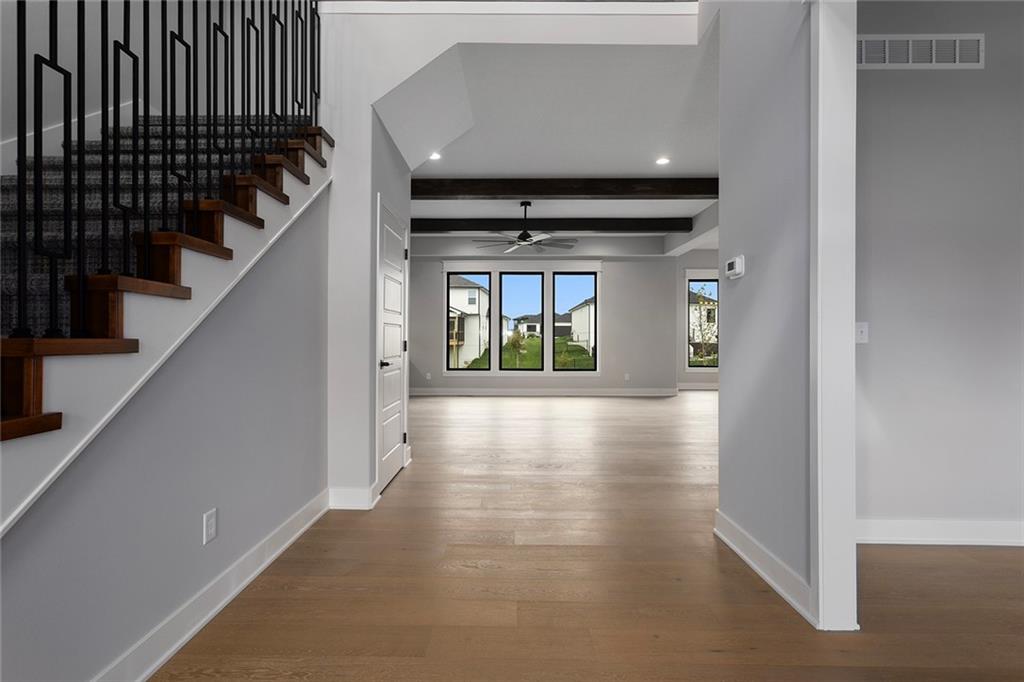 The Monticello by McBee Custom Homes is a thoughtfully designed 2-story plan offering functional, flexible living spaces. The open-concept main floor seamlessly connects the living room, dining area, and kitchen, featuring a large island with stunning quartz counters & a beautiful blend of painted & stained cabinets. A dedicated office/den plus a versatile flex room with a full bath provide ideal options for remote work, guests, or additional living space all on the main level! You will love the extras McBee Custom Homes adds with built-in cabinetry in the office, pantry & great room, plus vaulted ceilings with wood beams in both primary bedroom & great room. Upstairs, you’ll find four bedrooms, including a spacious primary suite and a private guest suite, along with two secondary bedrooms & full bath. Estimated completion: Summer 2026. Located in Prairie Field in the Liberty School District, with neighborhood amenities including an infinity-edge pool, trails, and planned pickleball courts.