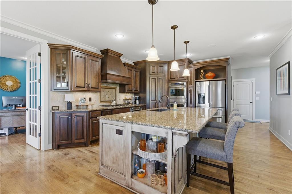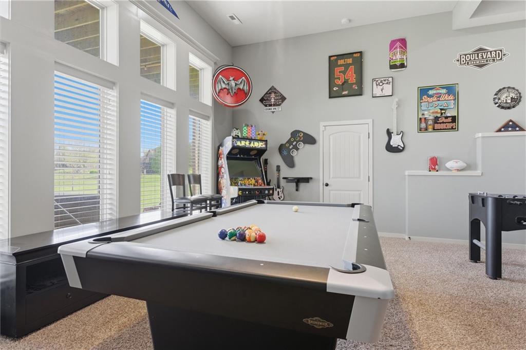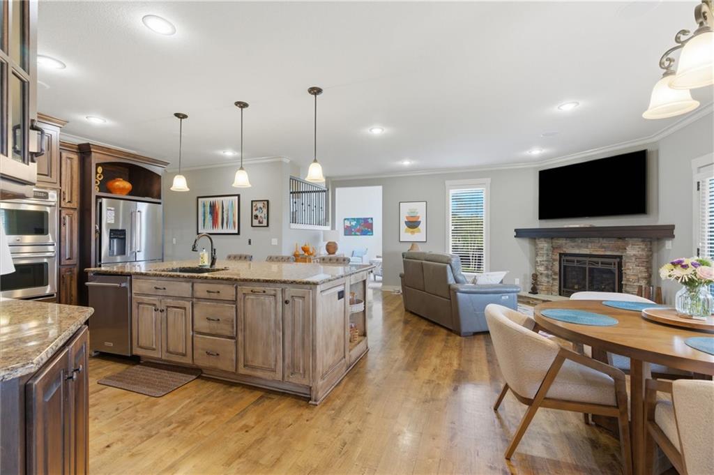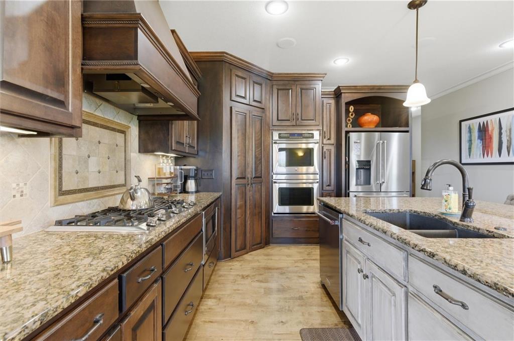 Stunning home on 1.35 acre lot! Walk in & admire gorgeous hardwood floors, tall cathedral ceilings & double bay windows! Gourmet kitchen w/large granite island, 5 burner gas cooktop, double oven & walk-in pantry! Enjoy summer nights on your HUGE, 23×12 covered deck + 16×12 uncovered deck! Entertain easily in your 2 tiered, 2000 sq ft. walk-out basement with large, granite wet bar that has a 2 tap kegerator, theater area, game room plus a vault with safe door under the suspended porch – seller is leaving the safe inside the vault! Suspended 3 car garage provides tons of storage! Master bathroom features double shower heads, body sprayer & heated floors! 2 HVAC units that are zoned! 2 water heaters! Sprinkler system! Other features include central speaker system, hot tub, landscaping accent lighting, new furnace, new roof, new exterior paint, garage is prewired for 2 high powered EV chargers, invisible fence & a 11×11 4th car garage in the basement that’s perfect for lawn equipment