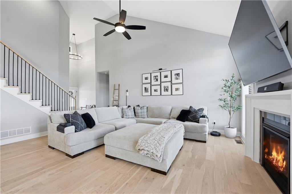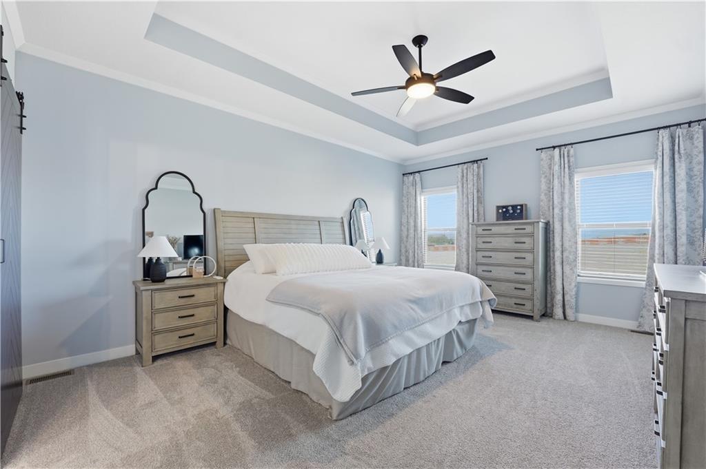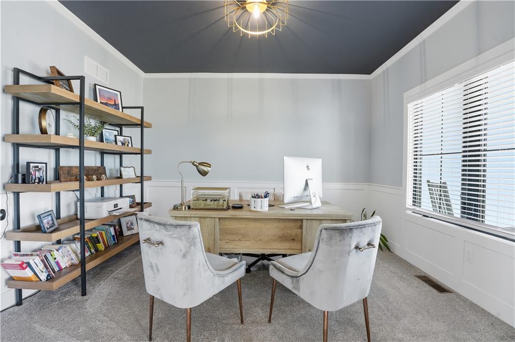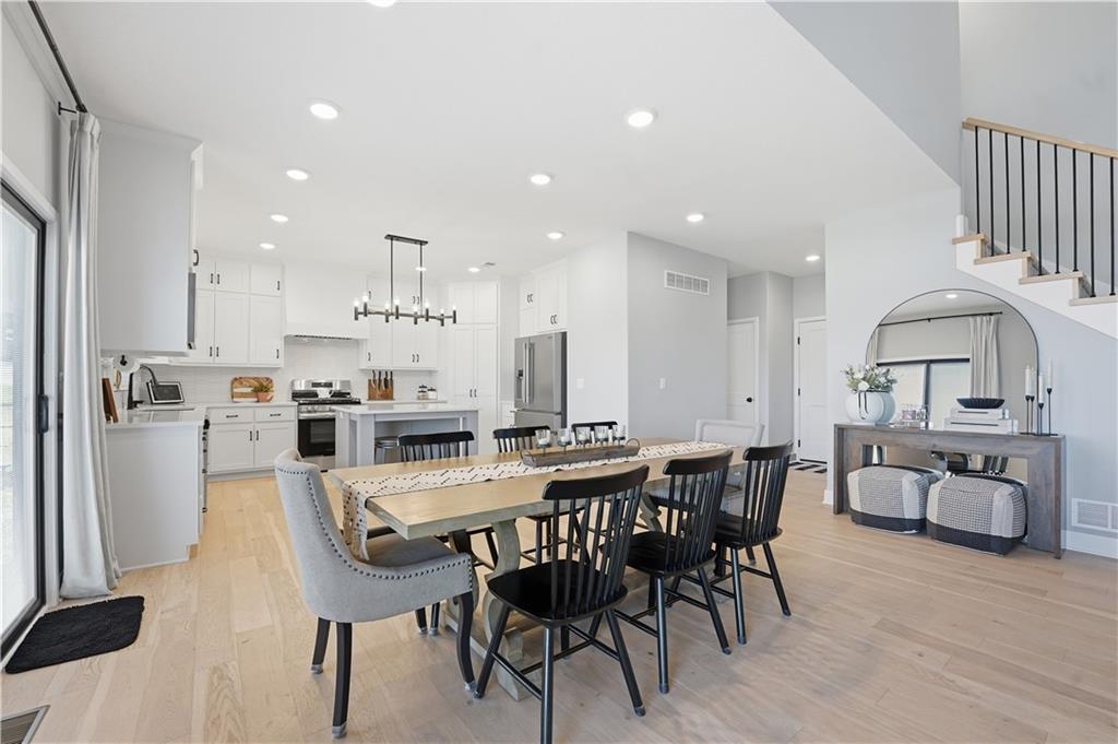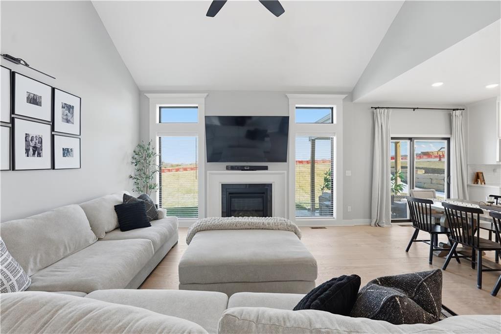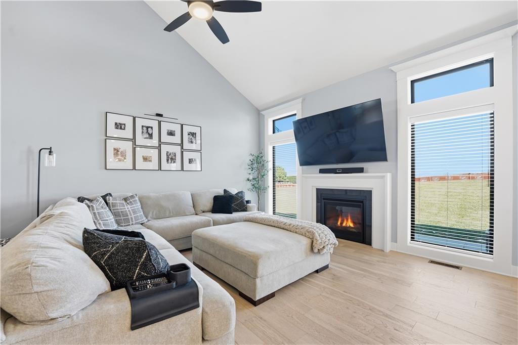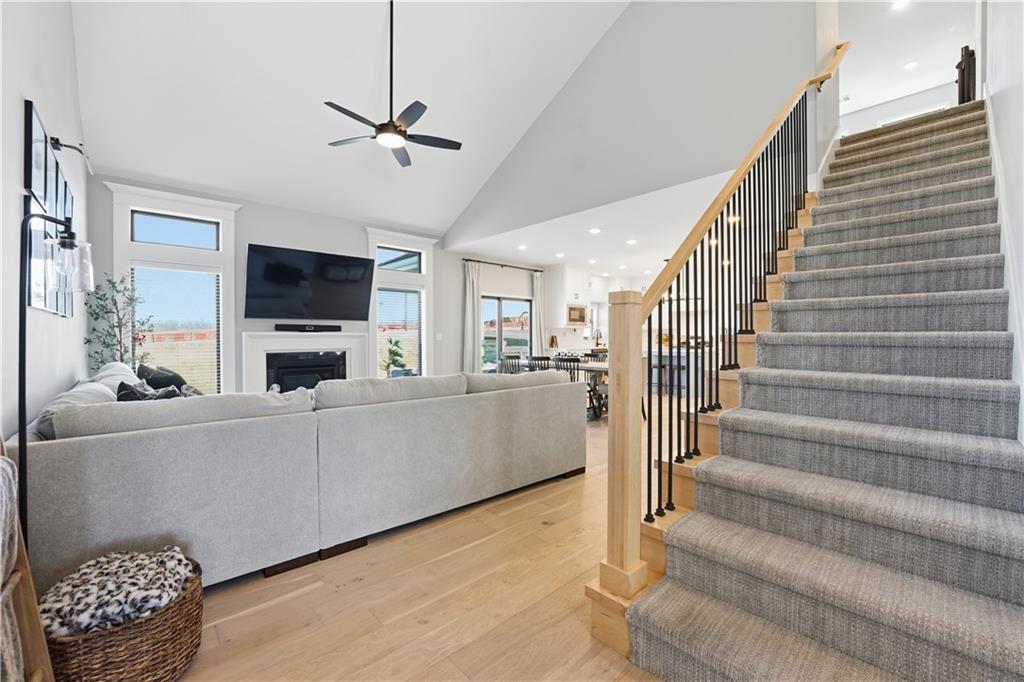 Price Reduction on this STUNNING 1.5 Story Home on a corner cul-de-sac lot. 4 bedroom with 3.5 baths 3 car garage with EV charging. Vaulted ceilings in the living room, Main floor master suite with office on main level. The kitchen offers high end cabinetry to the ceiling with walk in pantry and Calacatta Quartz countertops. 3 Bedrooms upstairs with additional living space. 2 full baths upstairs. Large unfished basement. Covered patio for enjoying your morning coffee and your evenings. Kearney address with Liberty Schools. Upgrades New sliding glass door with blinds, custom blinds throughout, Double front door, soaker tub in master bath, covered patio, sprinkler system