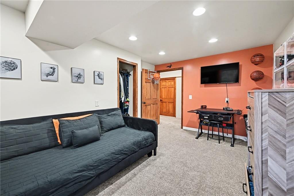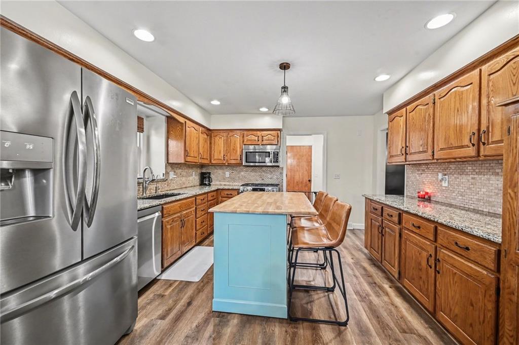This stunning 1.5-story home offers 7 bedrooms, 3 bathrooms, and an incredible amount of space for entertaining both inside and out. Step inside to soaring vaulted ceilings, fresh paint throughout, and a cozy fireplace that anchors the great room, which flows seamlessly into the elegant formal dining area. The chef’s kitchen is sure to impress with granite countertops, abundant cabinetry, a spacious walk-in pantry, gas stove, and new appliances that add both style and function. The luxurious primary suite is a retreat of its own, featuring a large walk-in closet, Jacuzzi tub, and private access to the deck. Secondary bedrooms are generously sized and thoughtfully located on all three levels, providing flexibility for family, guests, or home office needs, along with main-level laundry hookups for added convenience. The finished lower level is an entertainer’s dream, complete with a spacious family room, wet bar, game area, full bathroom, and two additional bedrooms. Storage is plentiful throughout the home, and new flooring adds a fresh, updated feel. Outdoors, enjoy the expansive two-tier deck with recent improvements, perfect for relaxing or hosting gatherings while overlooking the huge backyard with mature trees and a creek. Situated on over a half-acre lot, this property offers a rare combination of privacy, space, thoughtful updates, and everyday convenience. Don’t miss your chance to make this exceptional home your own.