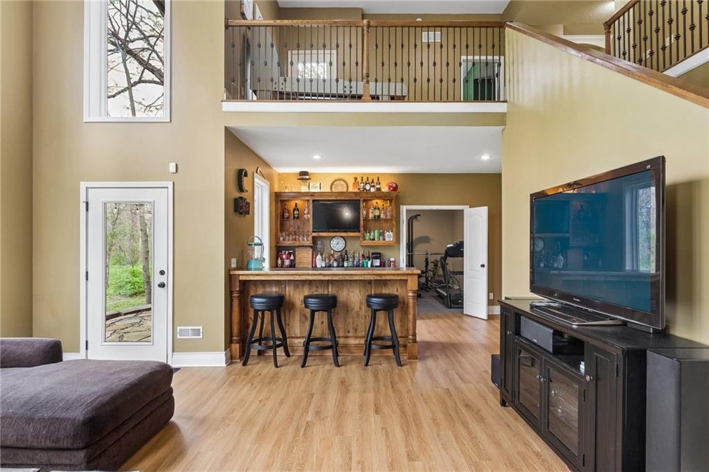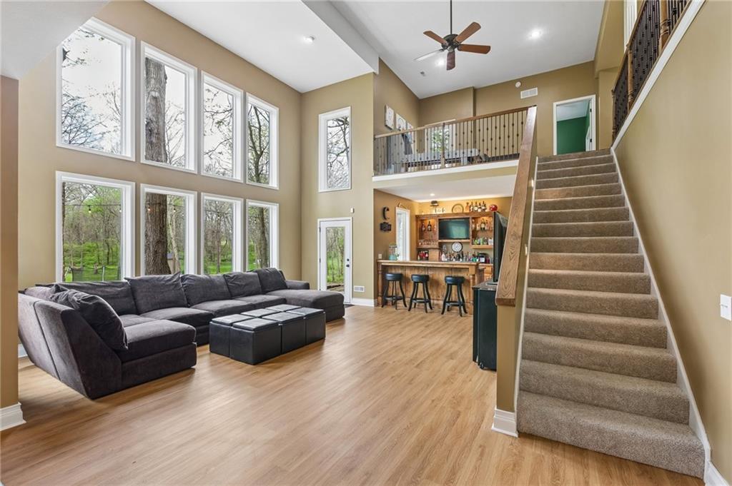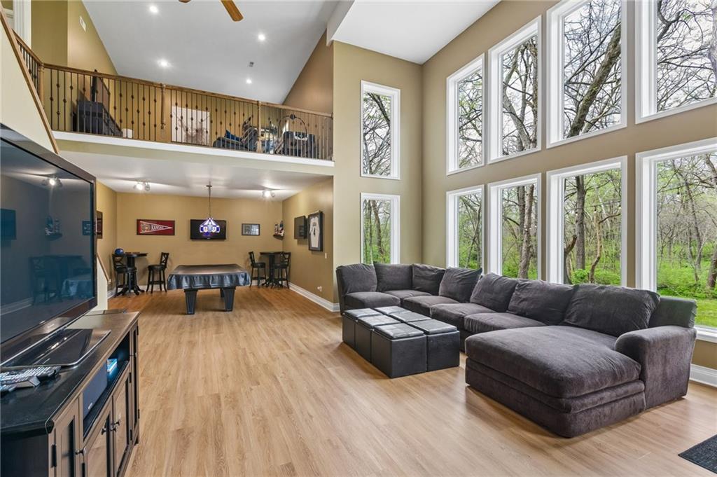 From the moment you walk in, the scale and intention of this home are undeniable. Tall ceilings and expansive windows draw your eyes straight to the surrounding trees and natural views, creating a sense of privacy and calm that’s hard to find. At the heart of the home, a unique mid-level living design sets the stage for what this property does best—entertain.