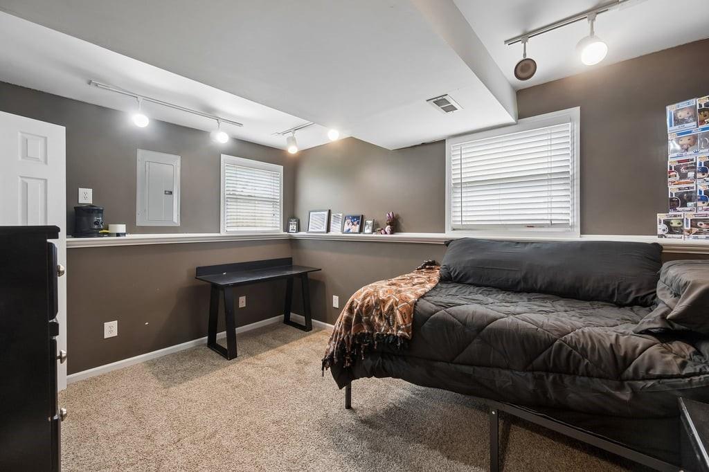 This move-in-ready home has been thoughtfully updated over the past few years, offering peace of mind and modern comfort. Recent improvements include updated lighting and ceiling fans, newer carpet and flooring, HVAC system, roof, gutters, entry doors, and a beautifully newer primary bath. Both bathrooms feature comfort-height toilets for added convenience. The home offers a spacious and inviting layout, including a generous primary suite with a large walk-in closet, along with an additional walk-in closet in the second bedroom—providing excellent storage throughout. At the heart of the home, you’ll find a gourmet kitchen complete with all appliances staying, perfect for everyday living and entertaining. The dining area is enhanced by a custom-built cabinet designed to discreetly conceal your TV and components, blending function with style for a clean, sophisticated look. The lower level expands your living space with a cozy family room and is already plumbed for a future ¾ bath, offering great potential for added value and customization.