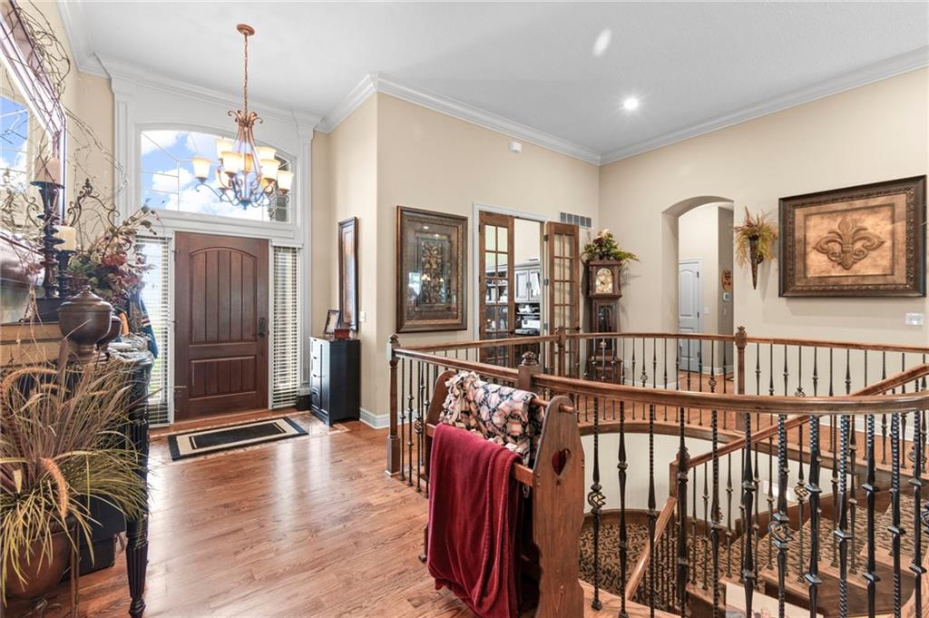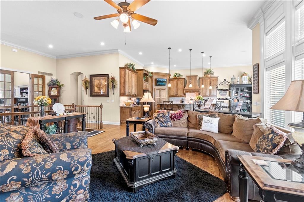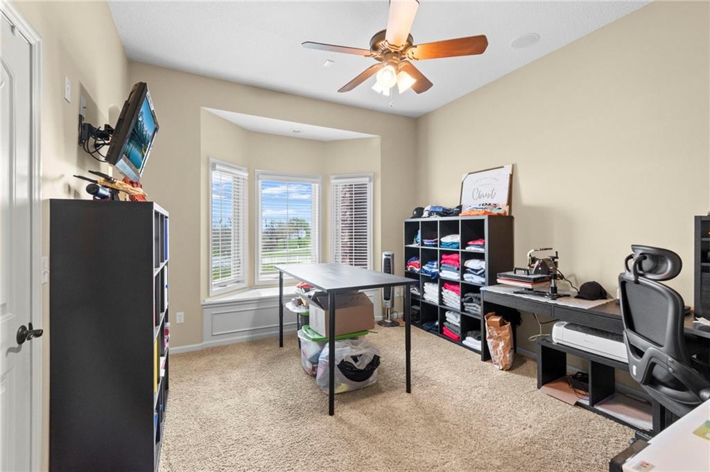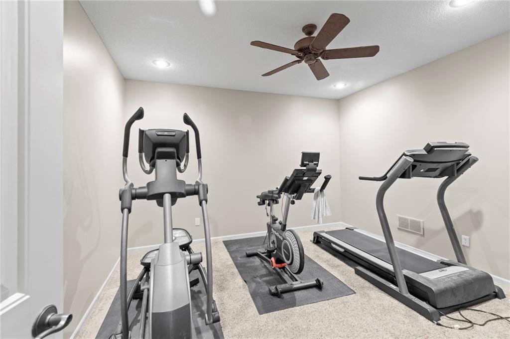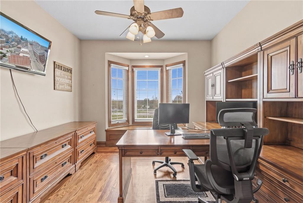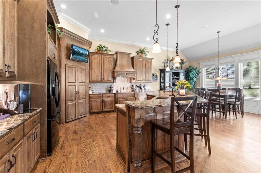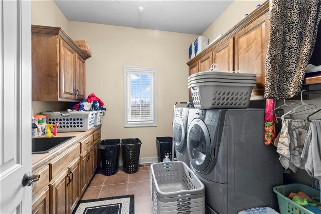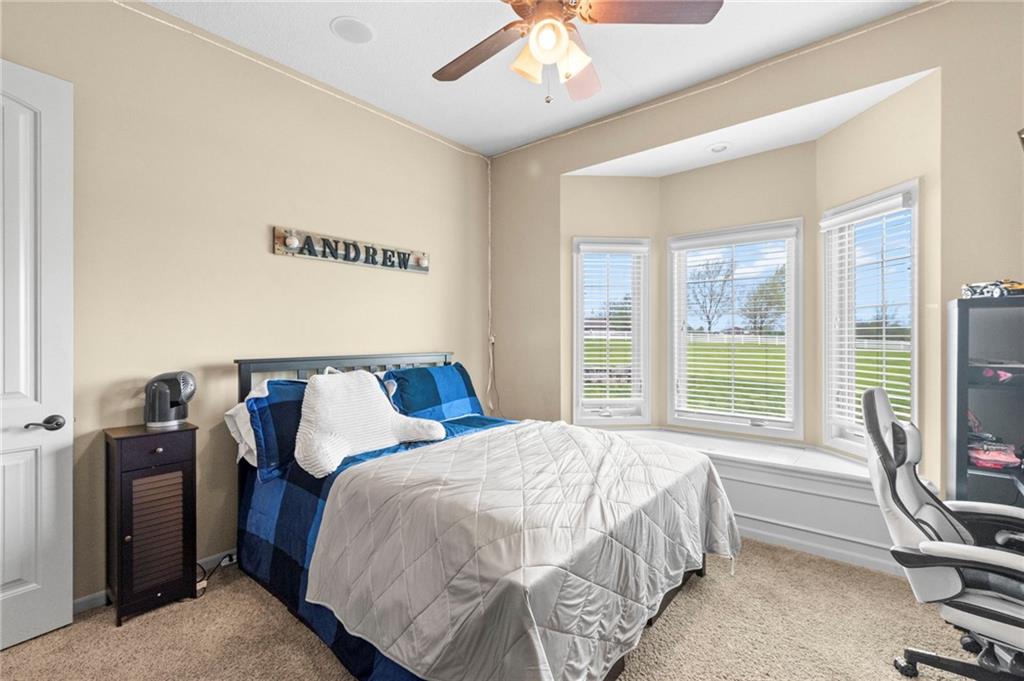 Set on nearly five acres just outside of town, this Kearney estate checks every box and then adds a few you didn’t know you needed. Inside, the main living space opens into a layout that feels open and intentional. The living room, dining area, and kitchen flow together seamlessly, anchored by hardwood floors and natural light. A fireplace with custom built-ins adds a focal point.The kitchen is built for real life and gatherings. Granite countertops, custom cabinetry, double wall ovens, and an oversized island make prep and hosting easy. A walk-in pantry keeps everything tucked away. The main level offers flexibility with a front room that can serve as a bedroom, formal dining space, or office. Two additional bedrooms share a well-designed bath with separate vanity areas. The primary suite is set apart, featuring a large walk-in closet and spa-like bath with soaking tub, tiled shower with dual heads, and double vanity. Laundry and a half bath complete the level. Downstairs, the finished lower level is built for hosting. A full wet bar with a large island opens into a second living area with its own fireplace. A private bedroom and bath make it ideal for guests or multi-generational living, along with a half bath and flexible space for a gym, office, or sixth non-conforming bedroom. Storage is extensive, with a suspended slab design offering approximately 55×31 of storage space, plus an additional 21×11 area that also functions as a secure storm shelter. The six-car attached garage provides plenty of space, and the detached 50×60 shop adds even more with its own office, bathroom, car wash, and paint bay, plus an unfinished upper level. Built with intention, the home features structural beams for wide open spaces, twelve-foot ceilings on both levels, geothermal heating, and energy-efficient windows. Mineral rights convey with the property, including oil and water discovered during the geothermal process and registered with the Missouri Department of Natural Resources.