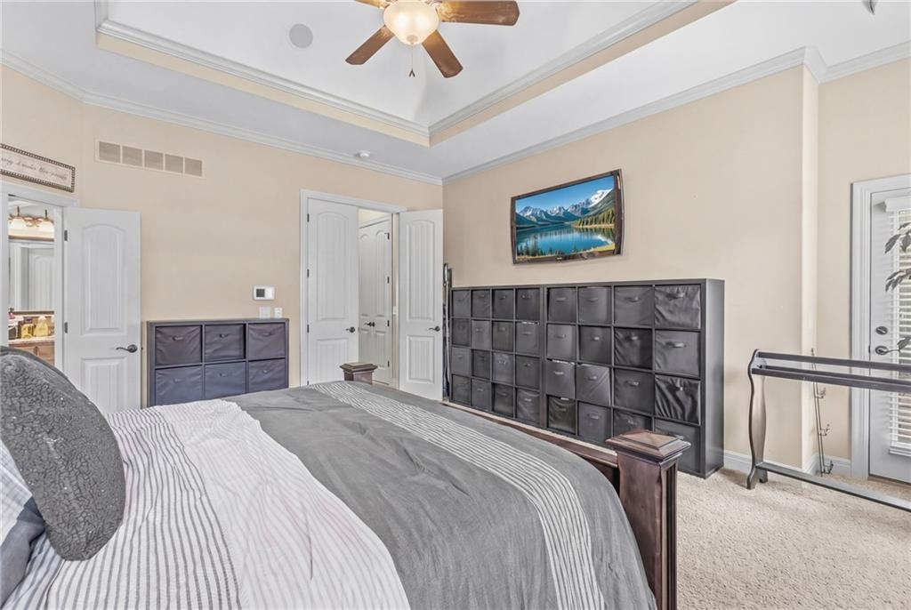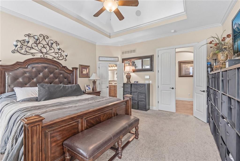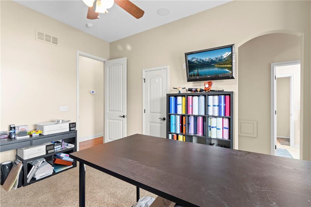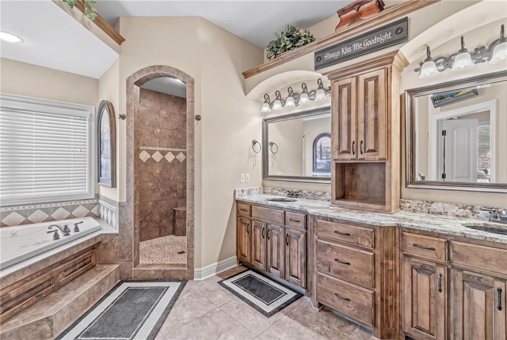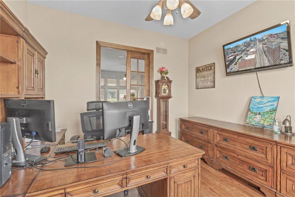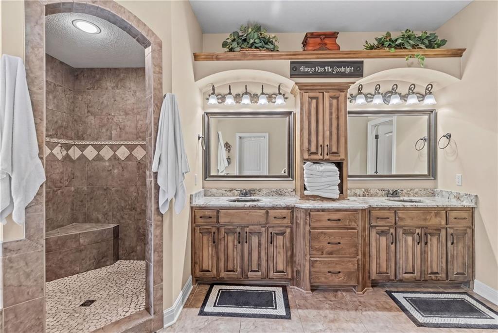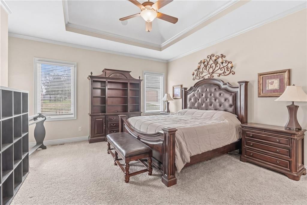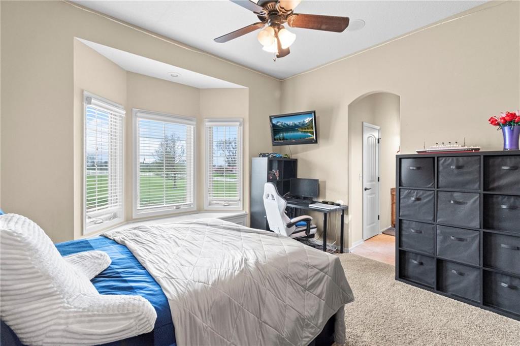 Set on nearly five acres just outside of town, this Kearney estate checks every box and then adds a few you didn’t know you needed. Inside, the main living space opens into a layout that feels open and intentional. The living room, dining area, and kitchen flow together seamlessly, anchored by hardwood floors and natural light. A fireplace with custom built-ins adds a focal point.The kitchen is built for real life and gatherings. Granite countertops, custom cabinetry, double wall ovens, and an oversized island make prep and hosting easy. A walk-in pantry keeps everything tucked away. The main level offers flexibility with a front room that can serve as a bedroom, formal dining space, or office. Two additional bedrooms share a well-designed bath with separate vanity areas. The primary suite is set apart, featuring a large walk-in closet and spa-like bath with soaking tub, tiled shower with dual heads, and double vanity. Laundry and a half bath complete the level. Downstairs, the finished lower level is built for hosting. A full wet bar with a large island opens into a second living area with its own fireplace. A private bedroom and bath make it ideal for guests or multi-generational living, along with a half bath and flexible space for a gym, office, or sixth non-conforming bedroom. Storage is extensive, with a suspended slab design offering approximately 55×31 of storage space, plus an additional 21×11 area that also functions as a secure storm shelter. The six-car attached garage provides plenty of space, and the detached 50×60 shop adds even more with its own office, bathroom, car wash, and paint bay, plus an unfinished upper level. Built with intention, the home features structural beams for wide open spaces, twelve-foot ceilings on both levels, geothermal heating, and energy-efficient windows. Mineral rights convey with the property, including oil and water discovered during the geothermal process and registered with the Missouri Department of Natural Resources.