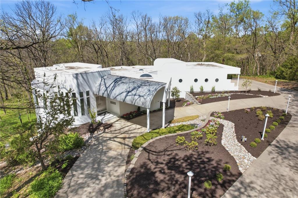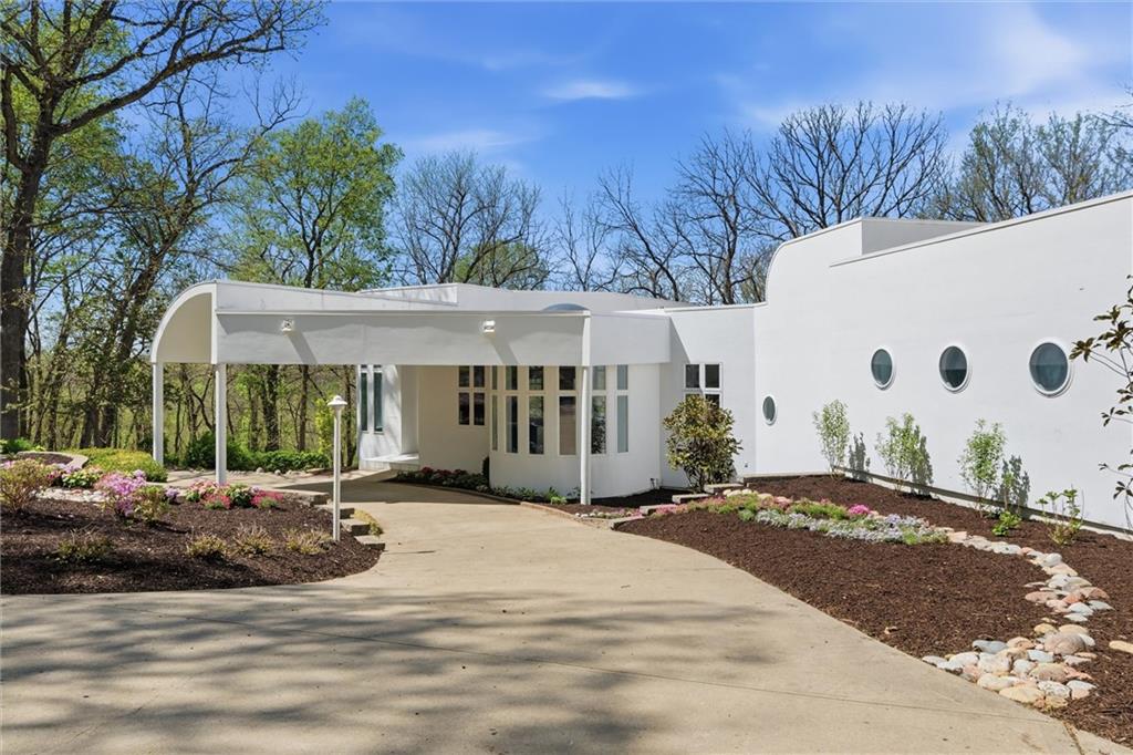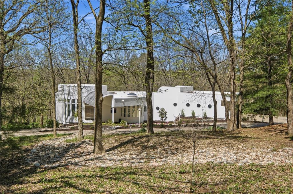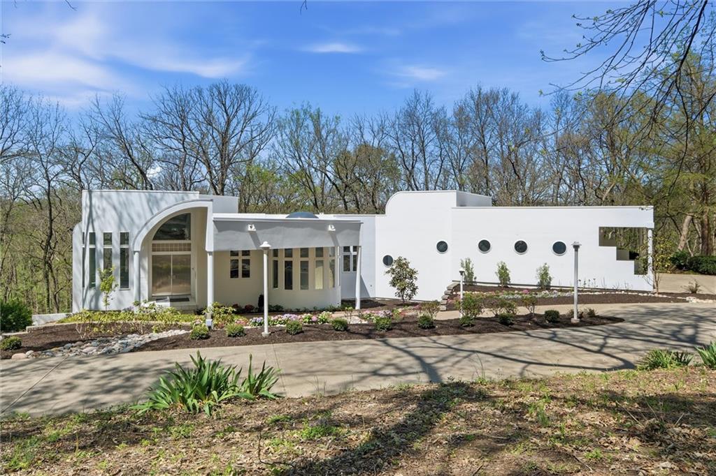 Experience a rare opportunity to own a living work of art. Masterfully designed by world-renowned architect Richard Meier, this custom-built residence is a symphony of light, geometry, and nature. Perched on a secluded cul-de-sac and nestled within a lush canopy of mature trees, the home embodies Meier’s signature modernist aesthetic–a striking white silhouette that serves as a pristine canvas for the surrounding forest’s vibrant colors. Wrapped in 5.19 acres of mature timber, this custom-built Richard Meier Estate offers the ultimate in architectural distinction and privacy. Designed to harmonize with its wooded surroundings, this contemporary reverse 1.5 story home features, soaring ceilings and an abundance of custom windows that frame breathtaking views from every angle. The main level is anchored by a chef’s kitchen, bright and airy, round, eat in kitchen area, separate pantry, main level laundry room, and a grand living area featuring one of three see through fireplaces. Retreat to the primary suite, a true sanctuary with its own see-though fireplace, attached to a private study with patio access,. Relax in spa-like bath with a jacuzzi tub, separate walk-in shower, dual closets, dual vanities, dual toilet closets! The walk-out lower level is an entertainers dream, complete with a second full kitchen, a spacious family room, infrared sauna room, exercise room and seamless access to the outdoor patio and creek. True to the architect’s vision, the home features soaring glass walls and expansive open spaces that seamlessly blur the boundary between indoors and out. Every angle is intentionally crafted to capture shifting natural light, creating an environment that feels both ethereal and grounded. This is more than a residence; it is a masterwork for the collector of fine architecture who seeks the ultimate harmony of space and site.