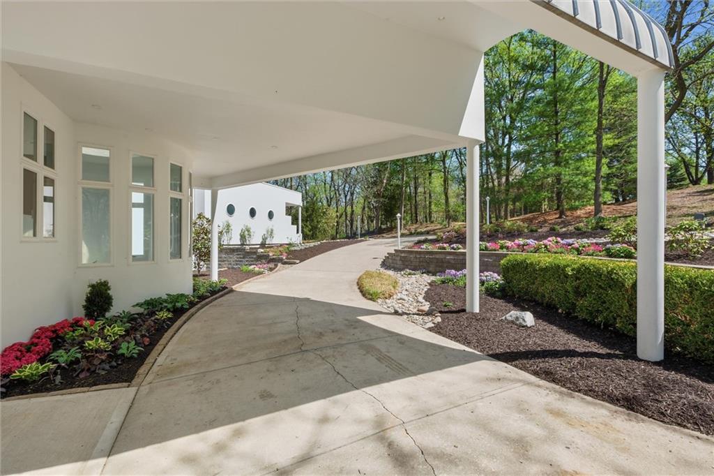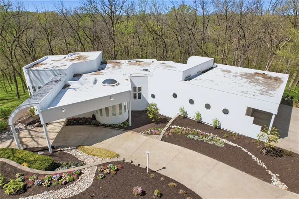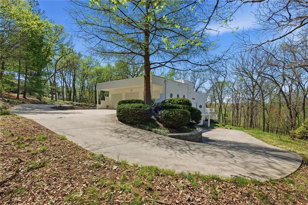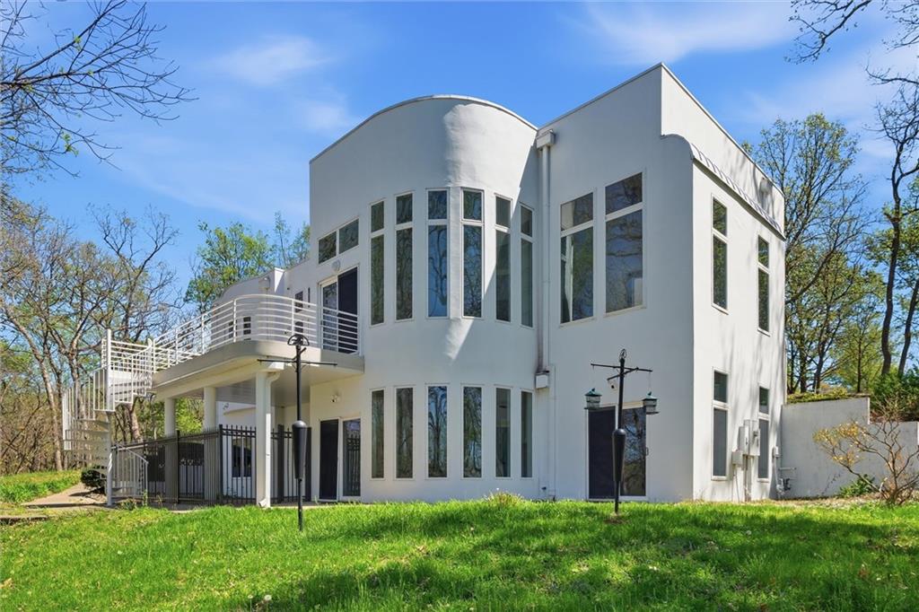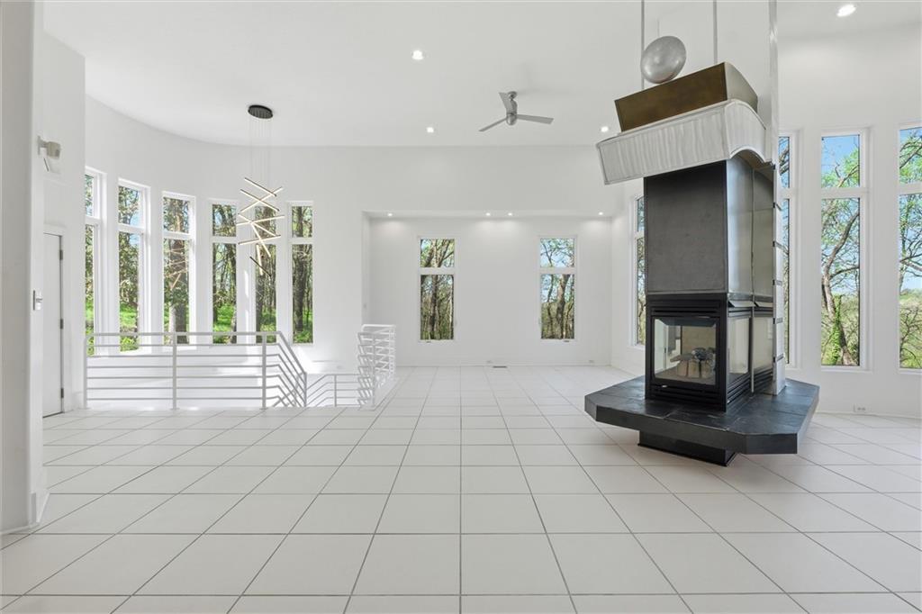 Experience a rare opportunity to own a living work of art. Masterfully designed by world-renowned architect Richard Meier, this custom-built residence is a symphony of light, geometry, and nature. Perched on a secluded cul-de-sac and nestled within a lush canopy of mature trees, the home embodies Meier’s signature modernist aesthetic–a striking white silhouette that serves as a pristine canvas for the surrounding forest’s vibrant colors. Wrapped in 5.19 acres of mature timber, this custom-built Richard Meier Estate offers the ultimate in architectural distinction and privacy. Designed to harmonize with its wooded surroundings, this contemporary reverse 1.5 story home features, soaring ceilings and an abundance of custom windows that frame breathtaking views from every angle. The main level is anchored by a chef’s kitchen, bright and airy, round, eat in kitchen area, separate pantry, main level laundry room, and a grand living area featuring one of three see through fireplaces. Retreat to the primary suite, a true sanctuary with its own see-though fireplace, attached to a private study with patio access,. Relax in spa-like bath with a jacuzzi tub, separate walk-in shower, dual closets, dual vanities, dual toilet closets! The walk-out lower level is an entertainers dream, complete with a second full kitchen, a spacious family room, infrared sauna room, exercise room and seamless access to the outdoor patio and creek. True to the architect’s vision, the home features soaring glass walls and expansive open spaces that seamlessly blur the boundary between indoors and out. Every angle is intentionally crafted to capture shifting natural light, creating an environment that feels both ethereal and grounded. This is more than a residence; it is a masterwork for the collector of fine architecture who seeks the ultimate harmony of space and site.