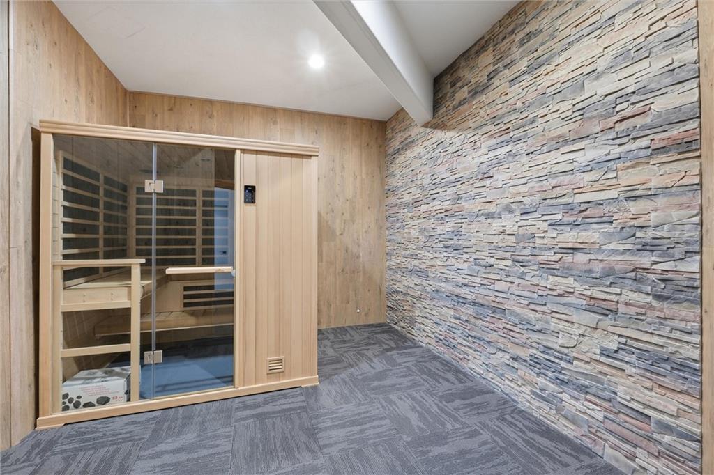 - Interior Features Central Vacuum, Custom Cabinets, Kitchen Island, Sauna, Walk-In Closet(s), Wet Bar