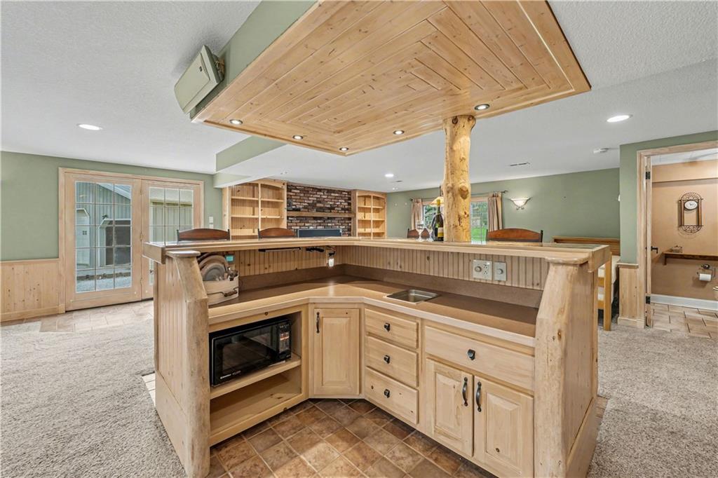 Car enthusiasts and hobbyists will appreciate the impressive 4-car detached garage, along with a versatile outbuilding/shop. The shop area is insulated for year-round use, and the outbuilding is built to last with footers, drain tile, and a durable thick concrete floor. Steel bumpers on the front of the garage add extra protection and practicality.
