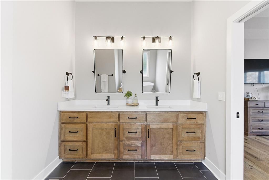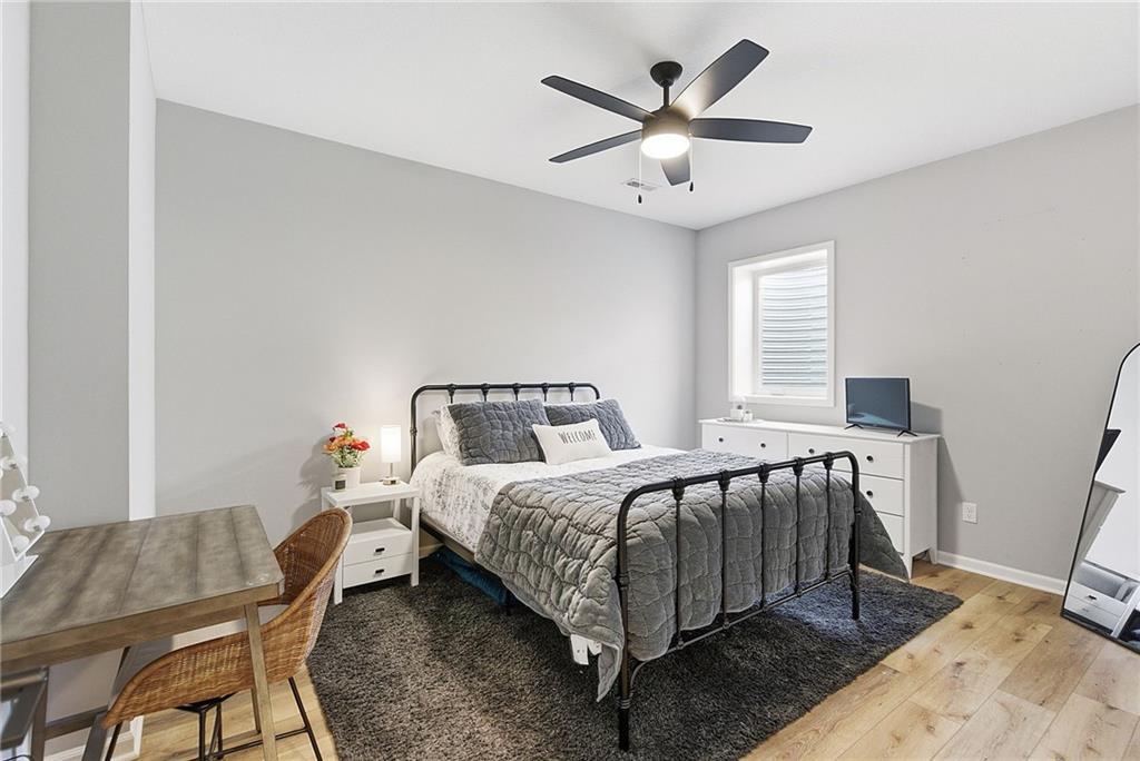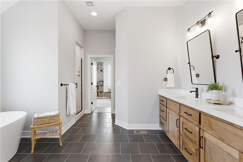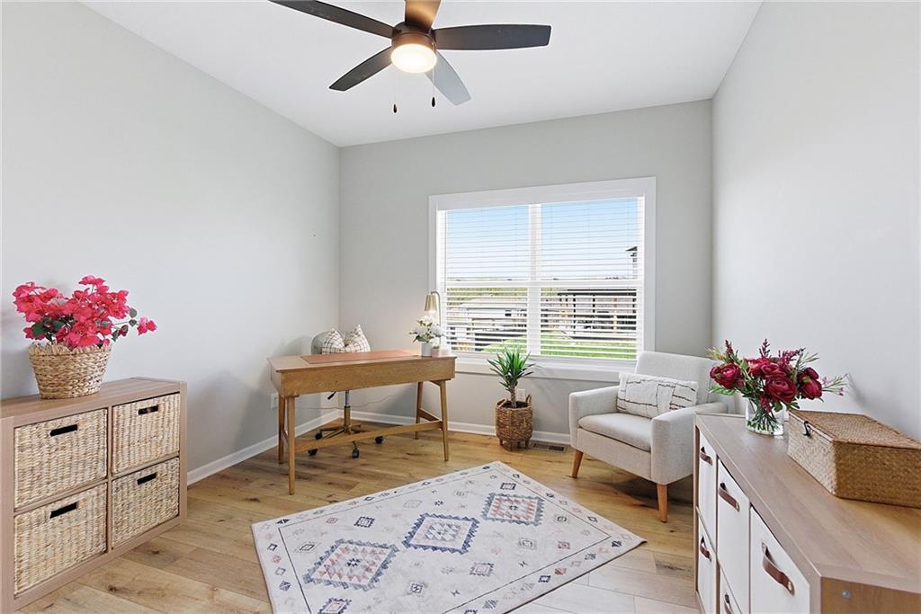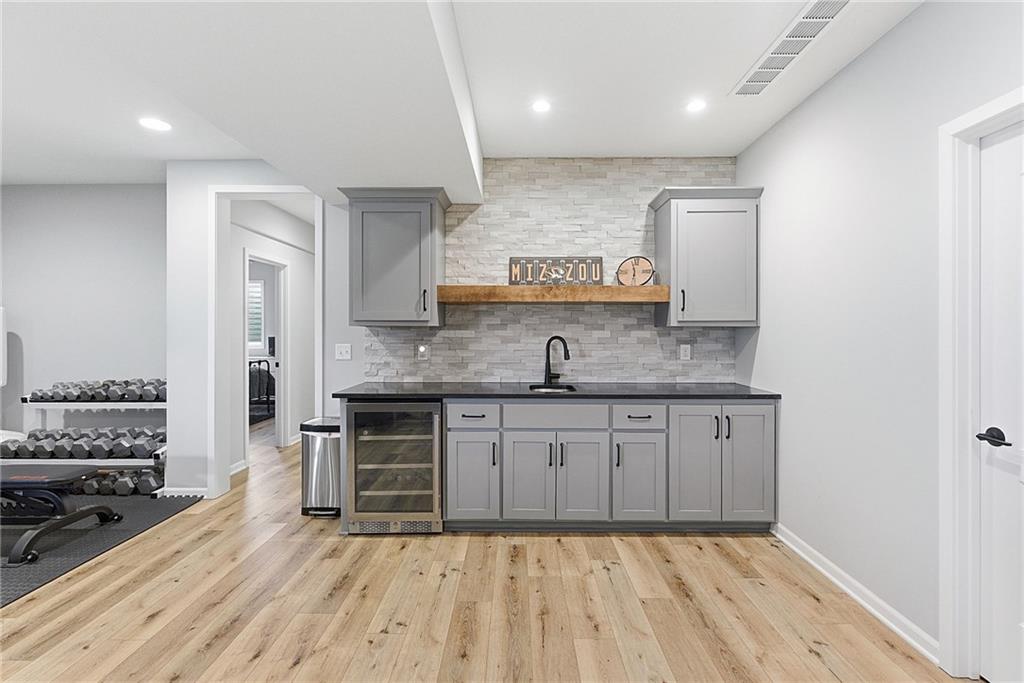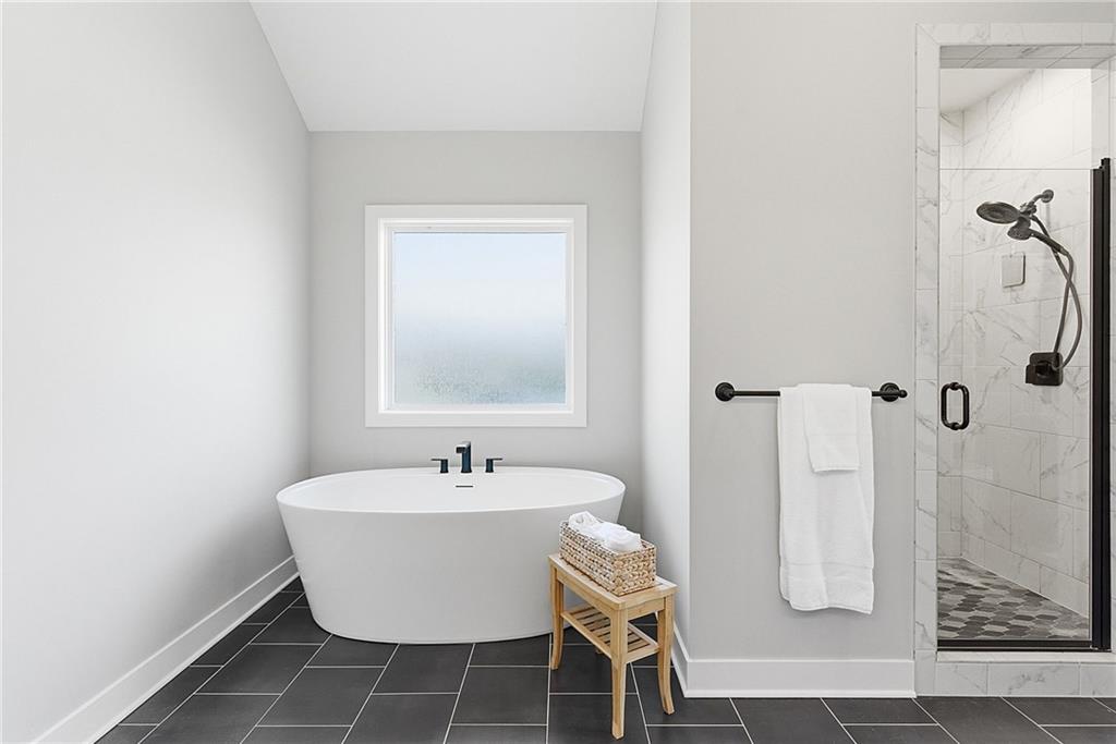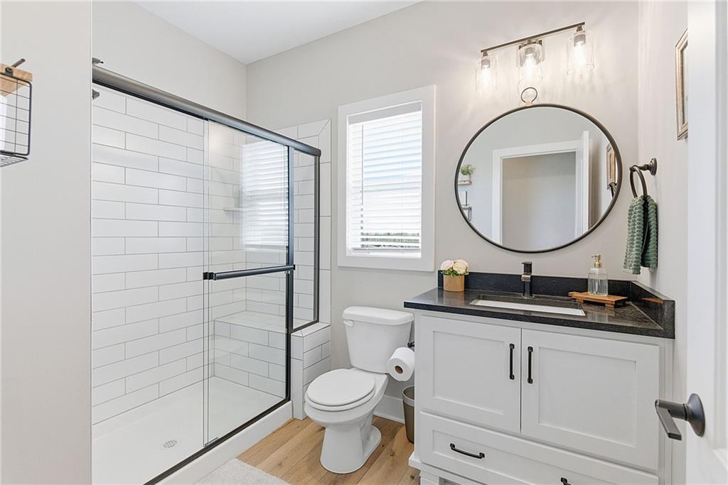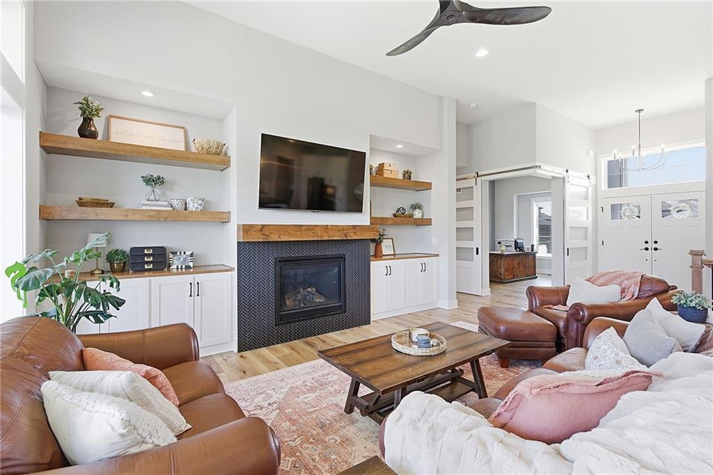 Bright and airy reverse 1.5 story designed for easy living and effortless entertaining. Luxury vinyl plank flooring runs throughout the main level, complementing the open floorplan and creating a seamless flow from room to room. A stunning wall of windows along the back of the home fills the space with natural light, making every area feel warm and inviting. The kitchen is both functional and beautiful, featuring abundant cabinetry and a large center island that’s perfect for gathering. The spacious primary suite offers a private retreat with a custom feature wall, direct access to the deck, dual vanities, a relaxing soaker tub, and a generous walk-in closet. A dedicated office on the main level provides the perfect work-from-home setup or quiet flex space. The walk-out lower level expands your living area with a large family room, wet bar, three additional bedrooms, and a second laundry room, ideal for convenience and hosting. Step outside to enjoy the large yard from either the covered deck or patio, perfect for relaxing or entertaining in any season.