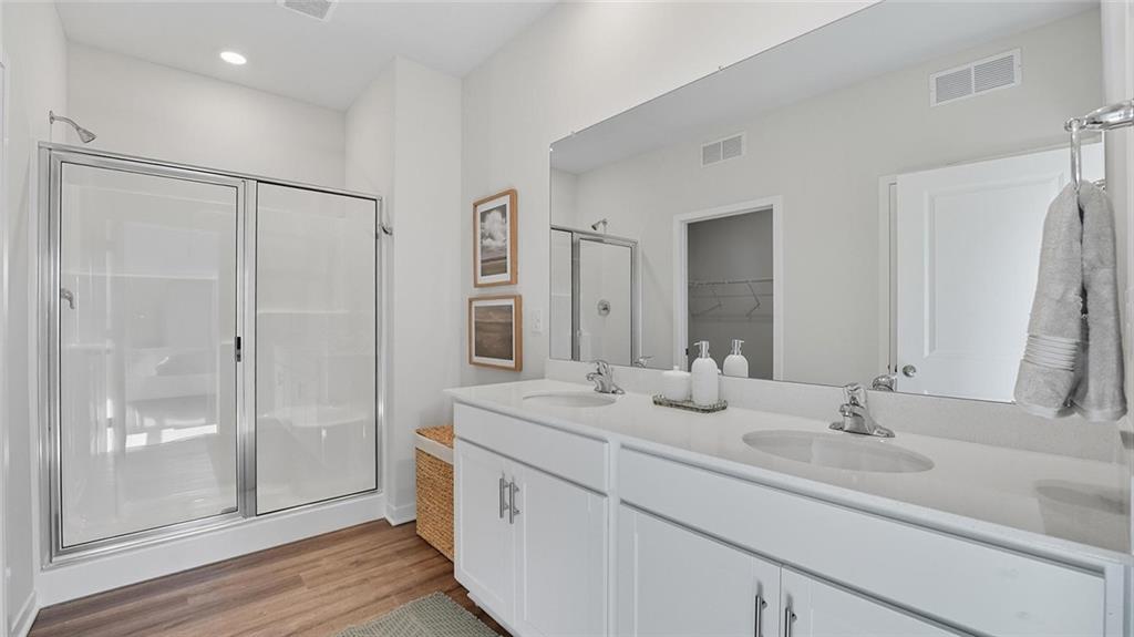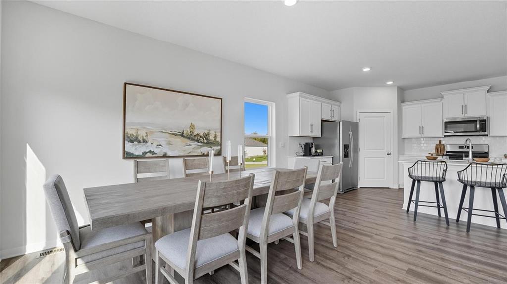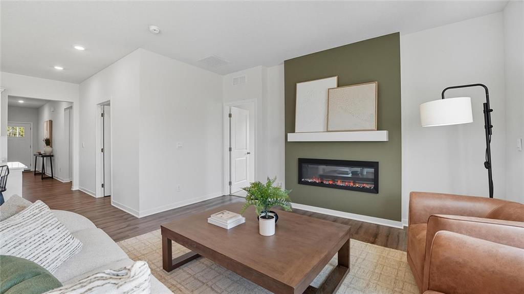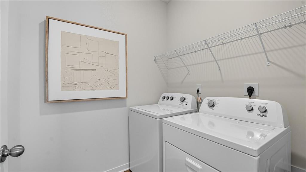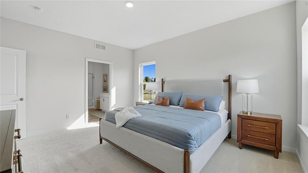 The kitchen features quartz countertops, painted maple cabinetry, and Whirlpool® stainless steel appliances, complemented by 9-foot ceilings and abundant natural light throughout. The primary suite offers a spa-inspired retreat with dual sinks, a spacious walk-in shower, and an expansive closet. Secondary bedrooms and baths are conveniently positioned to provide privacy while maintaining an efficient footprint. With Smart Home Technology this residence makes modern living effortless. Control your home’s climate and security with a Honeywell® Pro Z-Wave® Thermostat, Amazon Echo, and a connected home panel, all designed for ultimate convenience. LED lighting, a high-efficiency gas furnace, and energy-efficient insulated windows and double-walled construction ensure year-round comfort and savings. Additional features like durable luxury vinyl plank flooring, and an attached two-car garage with opener, the Chatham balances elegance with everyday practicality.