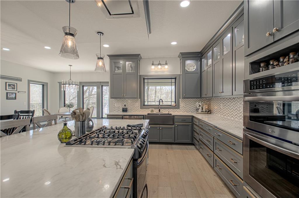 Wait until you walk into this custom built home, you will love it! It offers wood floors, Matarazzo polished marble counter tops in the kitchen, An electric wolf vent hood over the gas cooktop, a convection microwave and a double oven which are all upgraded appliance’s. Large walk in pantry and the dining area. Entertain on the covered deck area with cedar vaulted ceiling and a built in tv cabinet, a large open area for furniture and grilling. You will see so many wild animals too! Walk down to the lower patio and enter into the basement family room, another bedroom and the 4th car garage / suspended garage that will hold all of your toys and workshop tools if you like. This home will not disappoint. The built in shelves in the great room with a stubbed gas line for a fireplace, open flow for large gatherings and plenty of space for dining. Walk to the Owners suite and find a private deck, ceramic bath floor, walk in shower and a soaker tub. The walk in closet is spacious and passes through to the laundry room with a beautiful cabinet for storage and folding clothes then there’s the drop zone area for the garage. Walk down to the lower level and you will find 2 spacious bedrooms. Entertain in family room with a wet bar too. Here are some of the upgrades, HW circulator, security cameras, Anderson windows, rock walls for landscaping and deck, deck off of the Owners suite with a sidewalk, 95% furnace and dual zoned. Two x six construction. Watch the slow train that comes through on Wednesdays, 6-8 cars that go into town and then back out later in the day. The setting is so pretty and you will love the privacy and view of the woods.